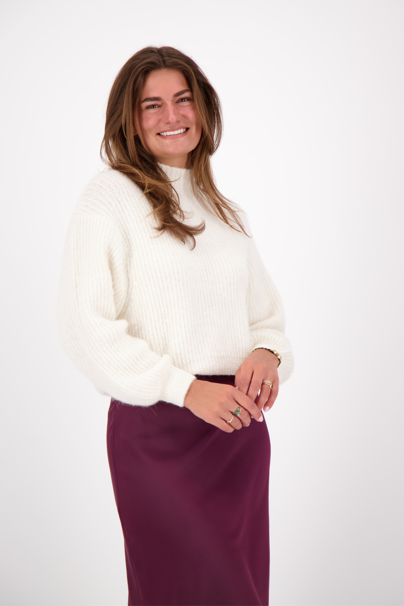 De East Sweater van het merk American Vintage is een grofgebreide trui met een hoge hals en lange mouwen. De trui is afgewerkt met geribde boorden, wat zorgt voor een comfortabele en stevige pasvorm.