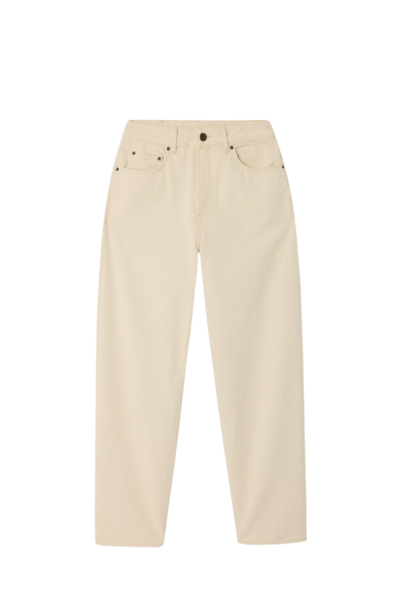 De Snopdog 5 Pockets Jeans van American Vintage in Ecru is een ballon jeans met een comfortabele, losse pasvorm. De jeans heeft riemlussen en een knoop- en ritssluiting. Het klassieke 5-pocket design maakt dit model praktisch en tijdloos.