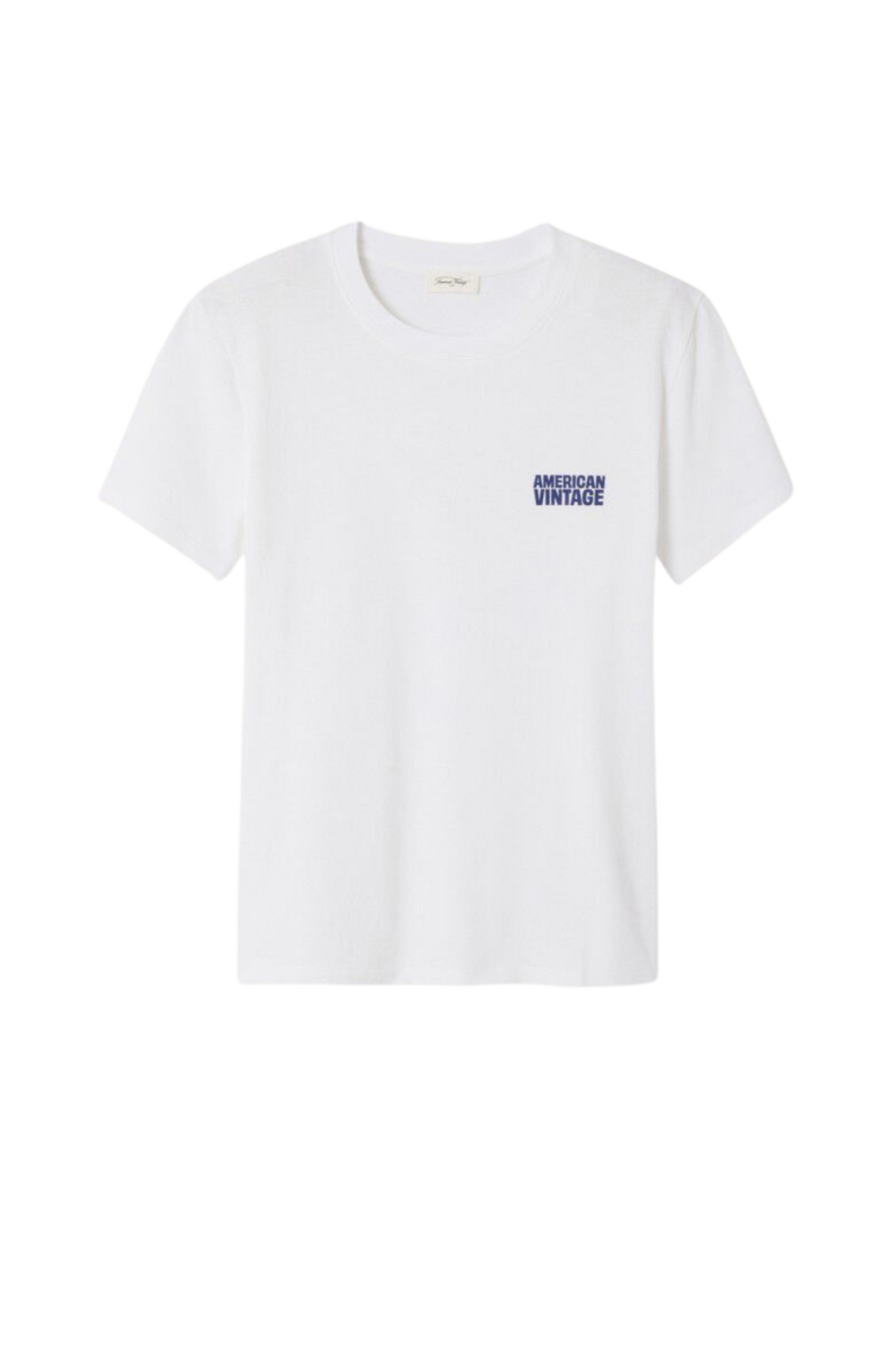 De Ykobow Shirt van American Vintage in Blanc White is een oversized T-shirt met een ronde hals en korte mouwen. Het model heeft een logo-opdruk op de borst en een comfortabele, losse pasvorm. Een basic item dat makkelijk te combineren is.