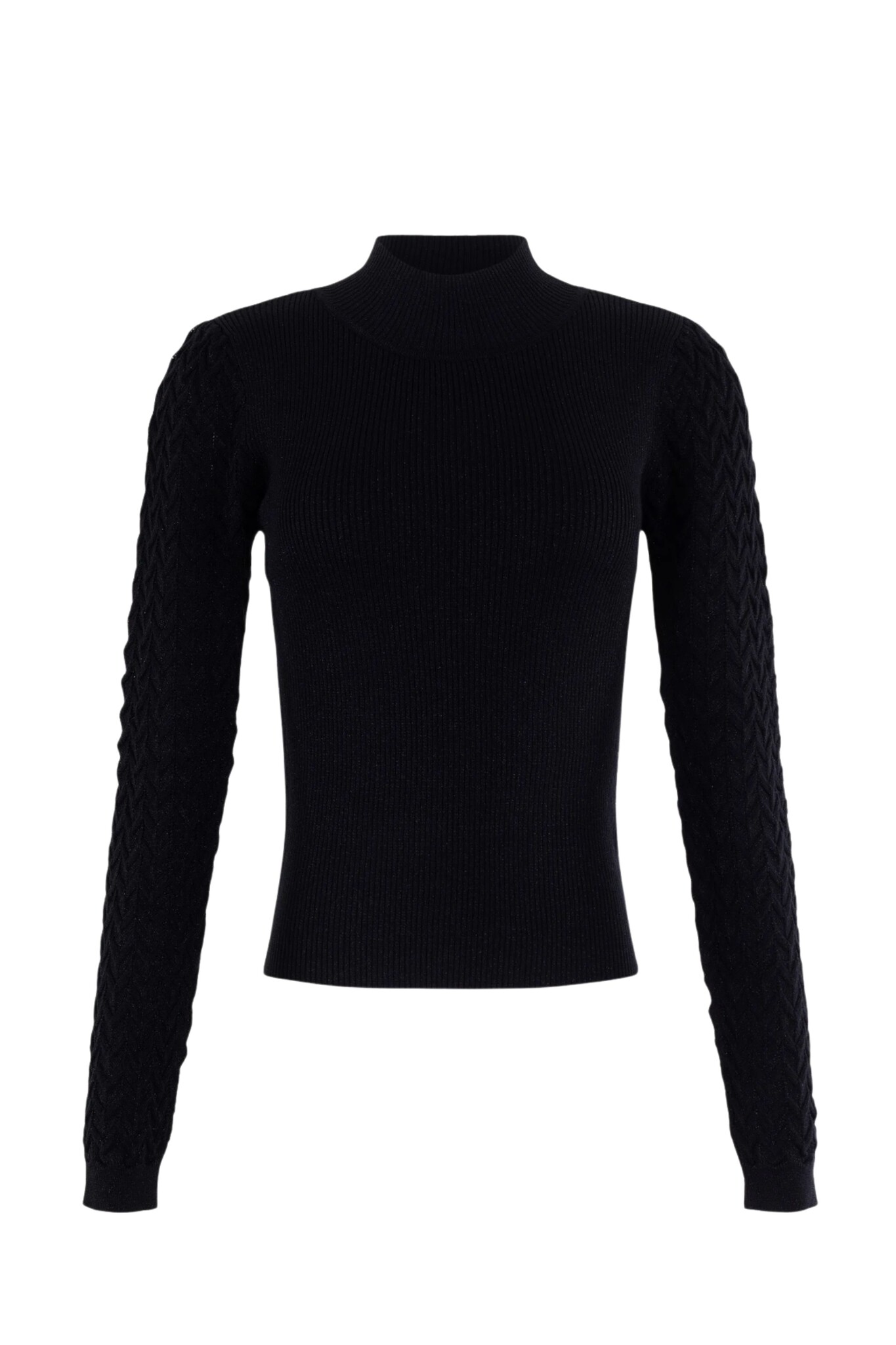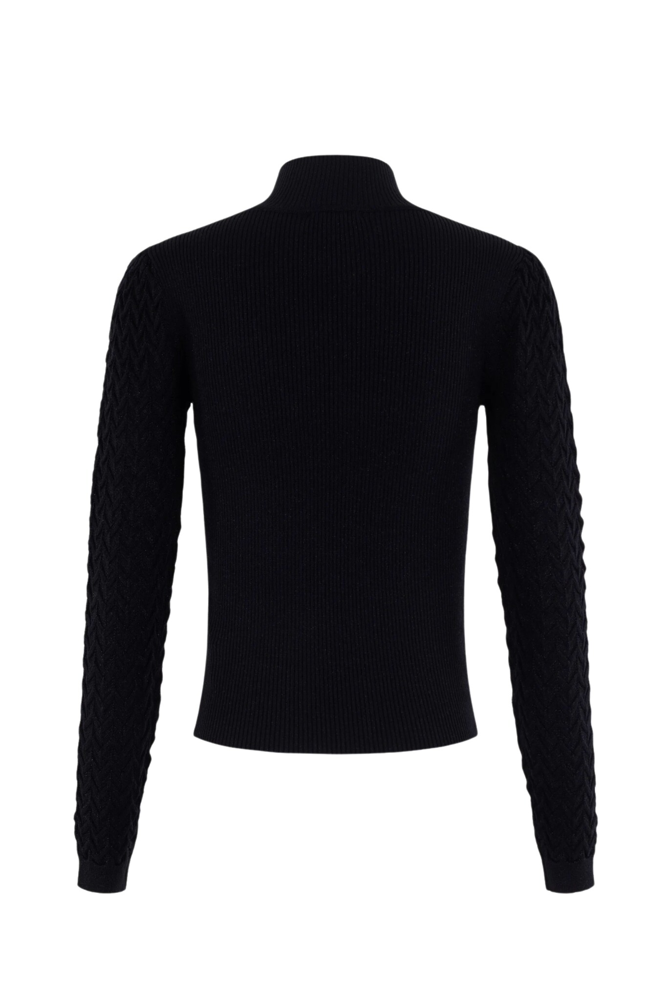 De Glitter Pullover van Anna is een chique en feestelijke trui in tijdloos zwart. De trui is fijn gebreid en verrijkt met subtiele glitter die door de stof heen is verwerkt. Het item heeft een elegante hoge hals en is uitgevoerd in een geribde stof, wat zorgt voor een aansluitende en flatterende pasvorm. Een opvallend detail is de visgraad structuur in de mouw, die een verfijnd patroon toevoegt aan de look.