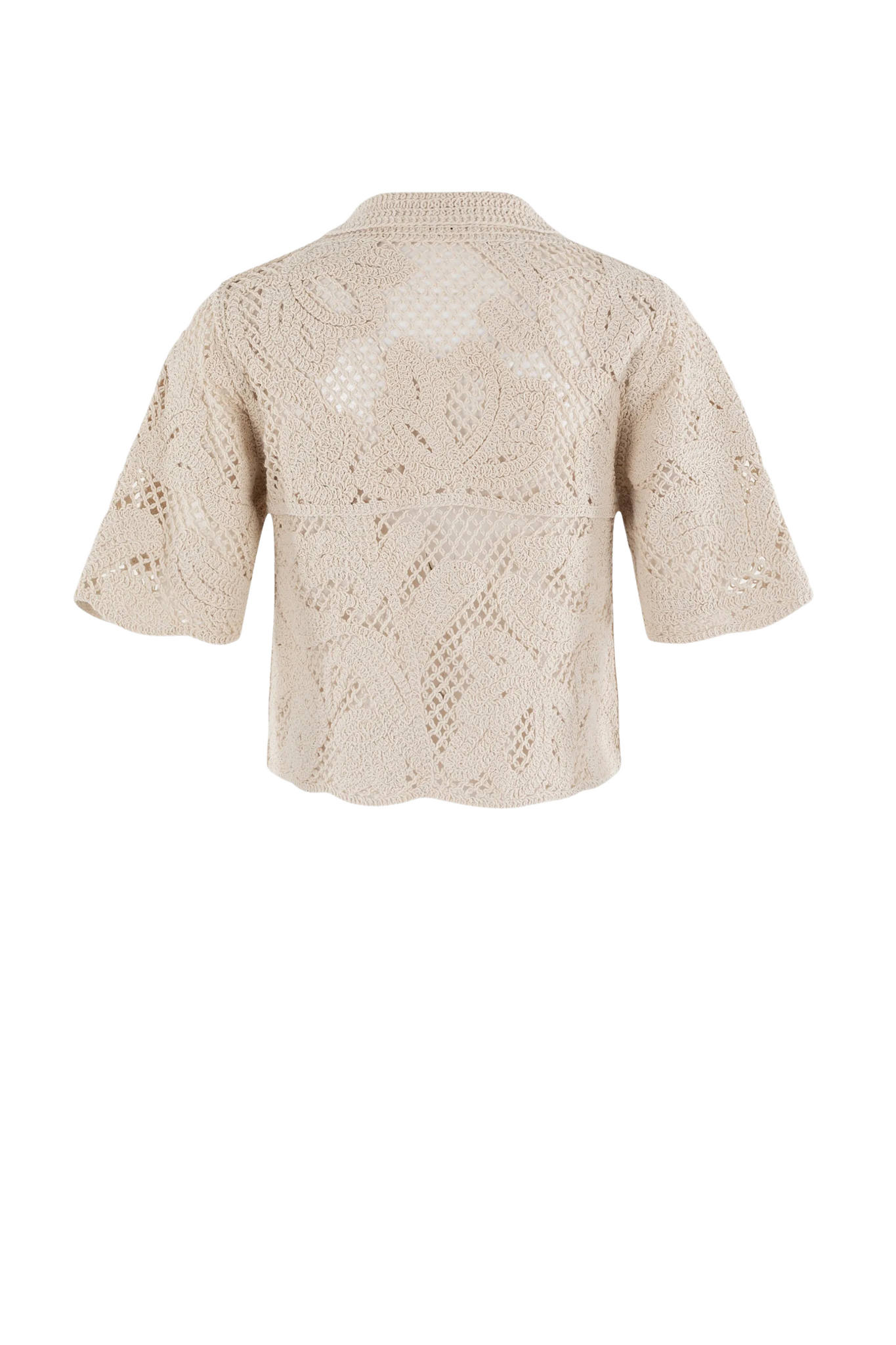 Het Cream Solid Vest van Anna is een gehaakt, opengewerkt vest met een polokraag en korte mouwen. De knoopsluiting aan de voorkant en de wave‑golvende uiteindes aan de mouwen en tailleband geven het vest een speels en elegant detail. Ideaal om over een top of jurk te dragen voor een casual-chic look.