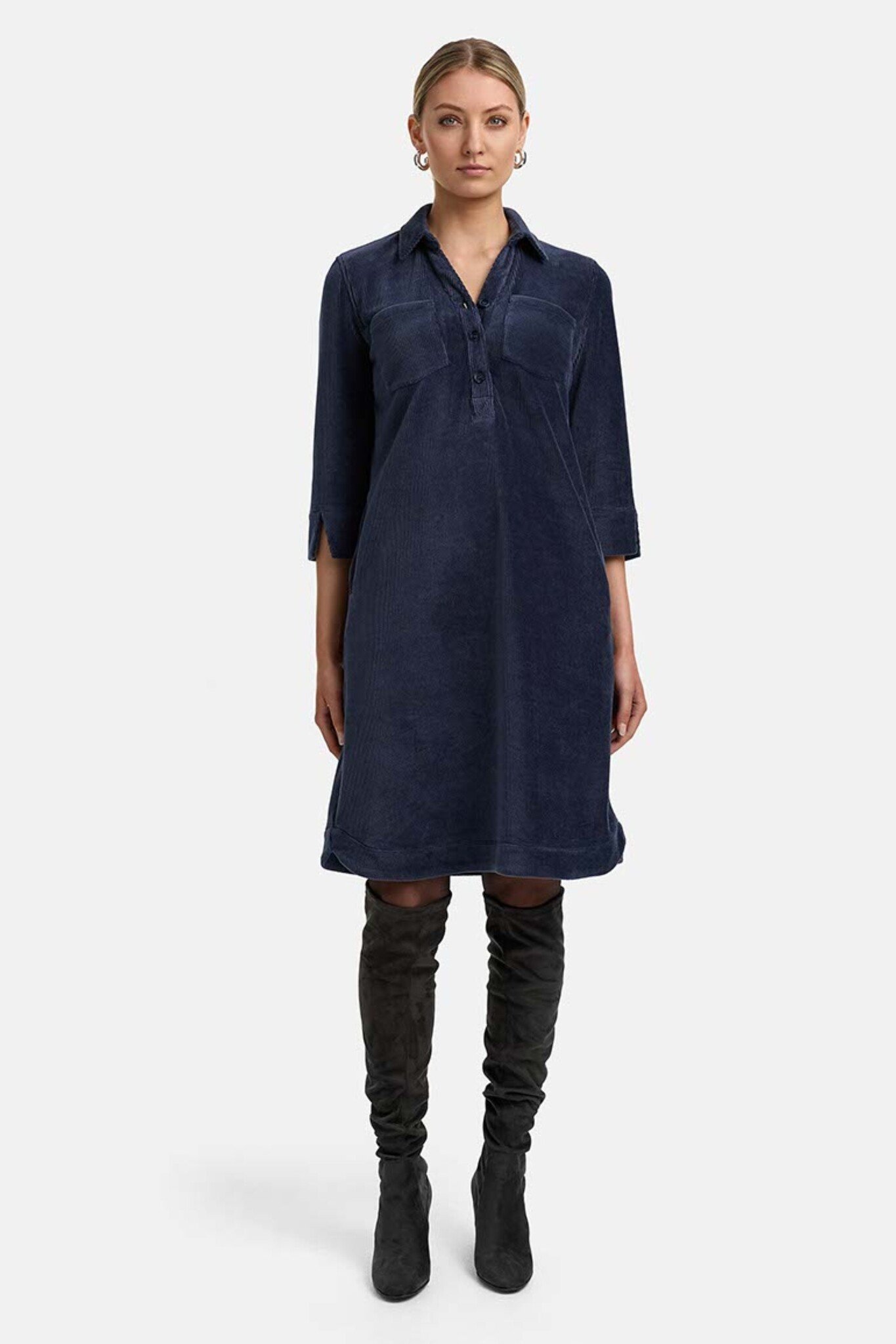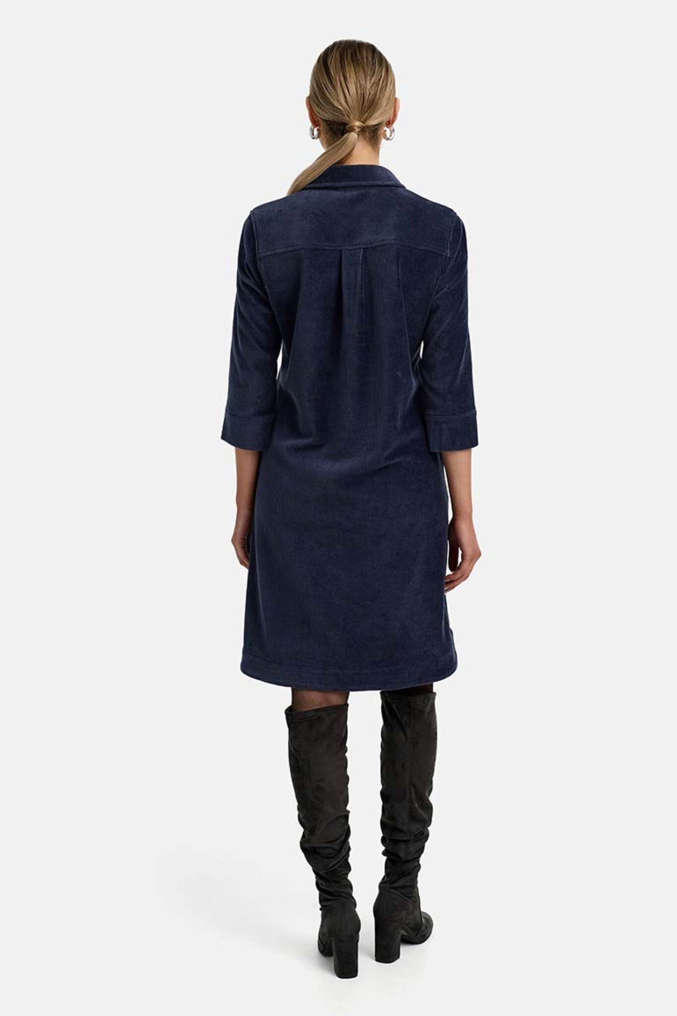 De Geribde Jurk van Catnoir is een stijlvol en praktisch item in een heldere blauwe kleur. De jurk heeft het model van een blousejurk en is gemaakt van een zachte geribde stof. Het item is voorzien van een klassieke overhemdkraag en driekwart mouwen. Functionaliteit staat voorop met zowel steekzakken op de borst als verborgen steekzakken in de zij. De jurk valt tot op de knie en is een veelzijdige keuze voor een elegante en casual look.