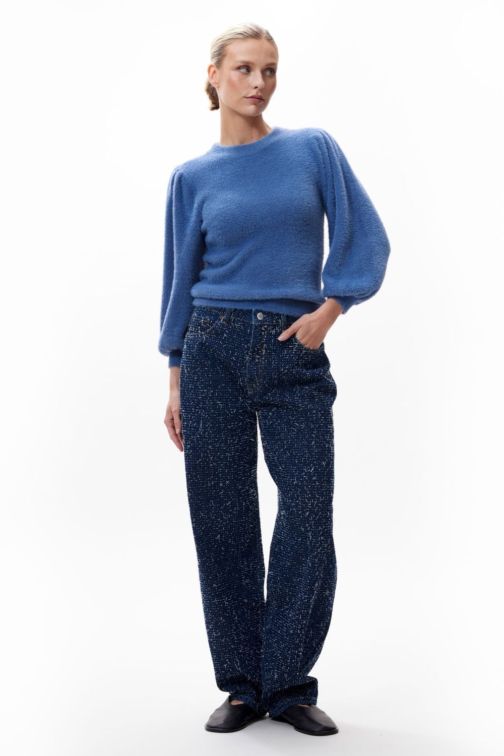 Catwalk Junkie - Fuzzy Puff Sleeve Knit - Bijou Blue
