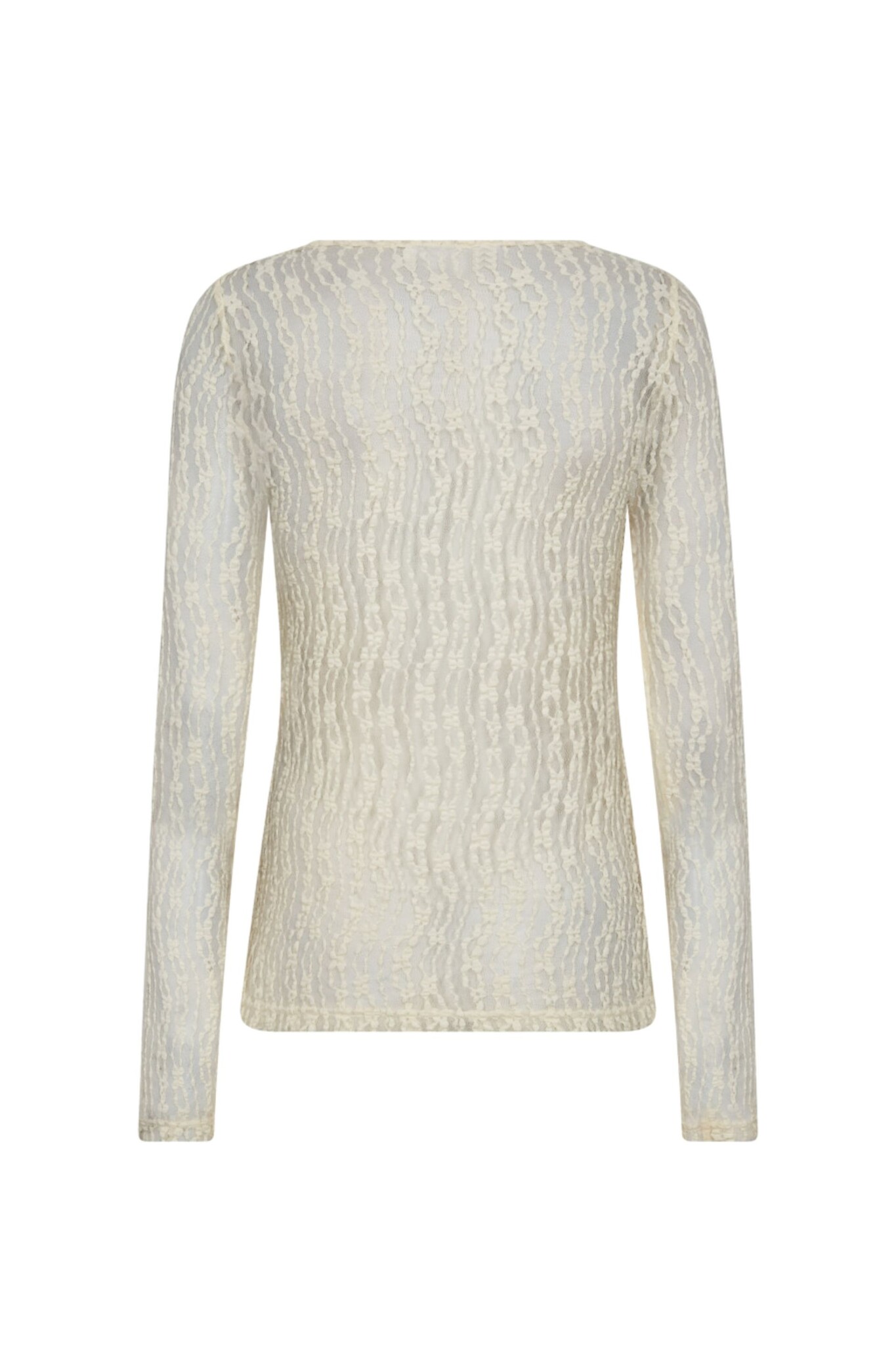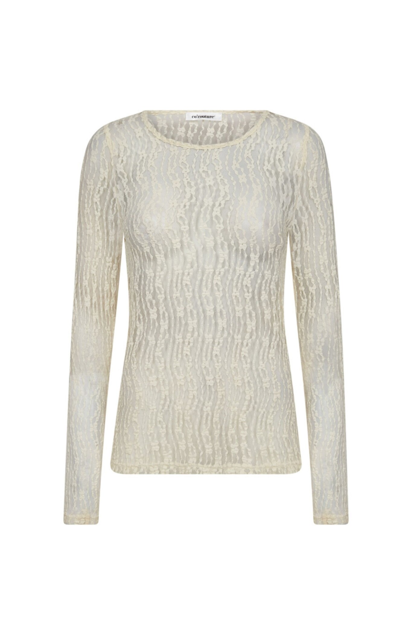 De Barb O-Neck Blouse van Co'couture is een verfijnde en tijdloze toevoeging aan je garderobe. Deze elegante kanten top in een frisse Off White kleur heeft een subtiele bewerking in de stof, wat zorgt voor een romantische maar moderne uitstraling. Het model heeft een aangesloten pasvorm die het silhouet prachtig volgt en is voorzien van een klassieke ronde hals en lange mouwen.