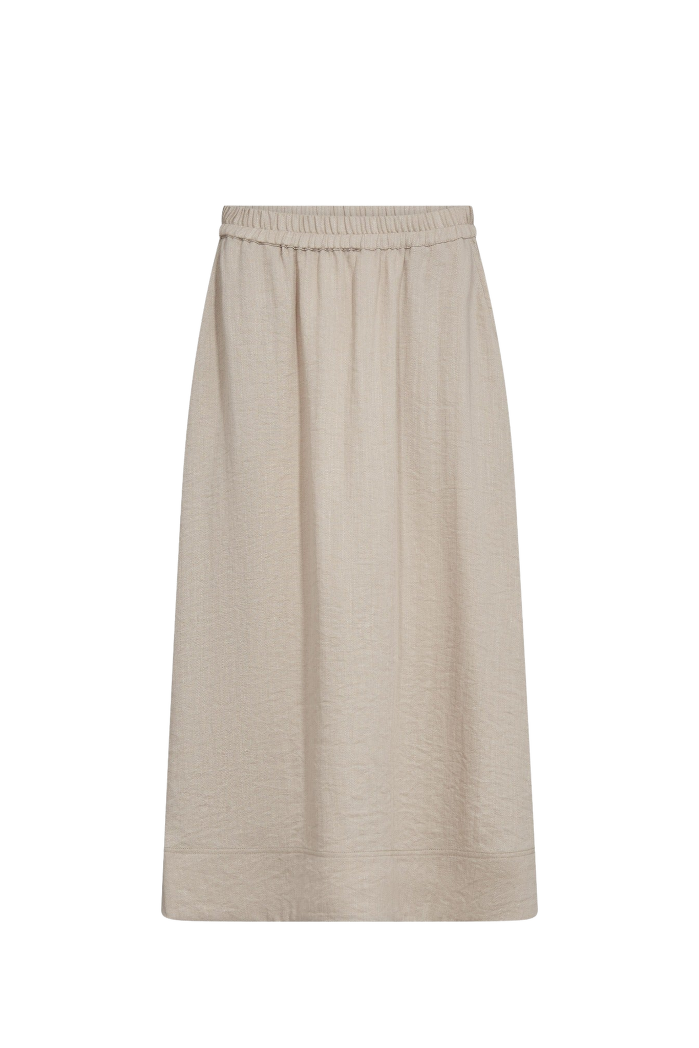 De Co'couture EvaCC Midi Elastic Skirt in Walnut is een stijlvolle en comfortabele rok met een natuurlijke uitstraling. Dit model op enkellengte is vervaardigd uit een luchtige linnenmix en voorzien van een praktische elastische tailleband. De rok is afgewerkt met handige steekzakken in de zijden, waardoor het een ideale combinatie is van elegantie en dagelijks draaggemak.