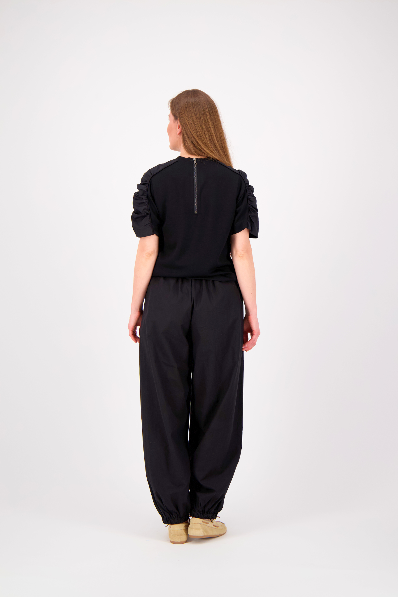 De Co'Couture Lance Gathering Tee in Black is een stijlvol shirt dat eenvoud combineert met een krachtig silhouet. Het model valt op door de volumineuze pofmouwen, die de top een moderne en vrouwelijke uitstraling geven. Met de ritssluiting aan de achterkant is dit zwarte item een geraffineerde keuze voor zowel een casual als een zakelijke outfit.
