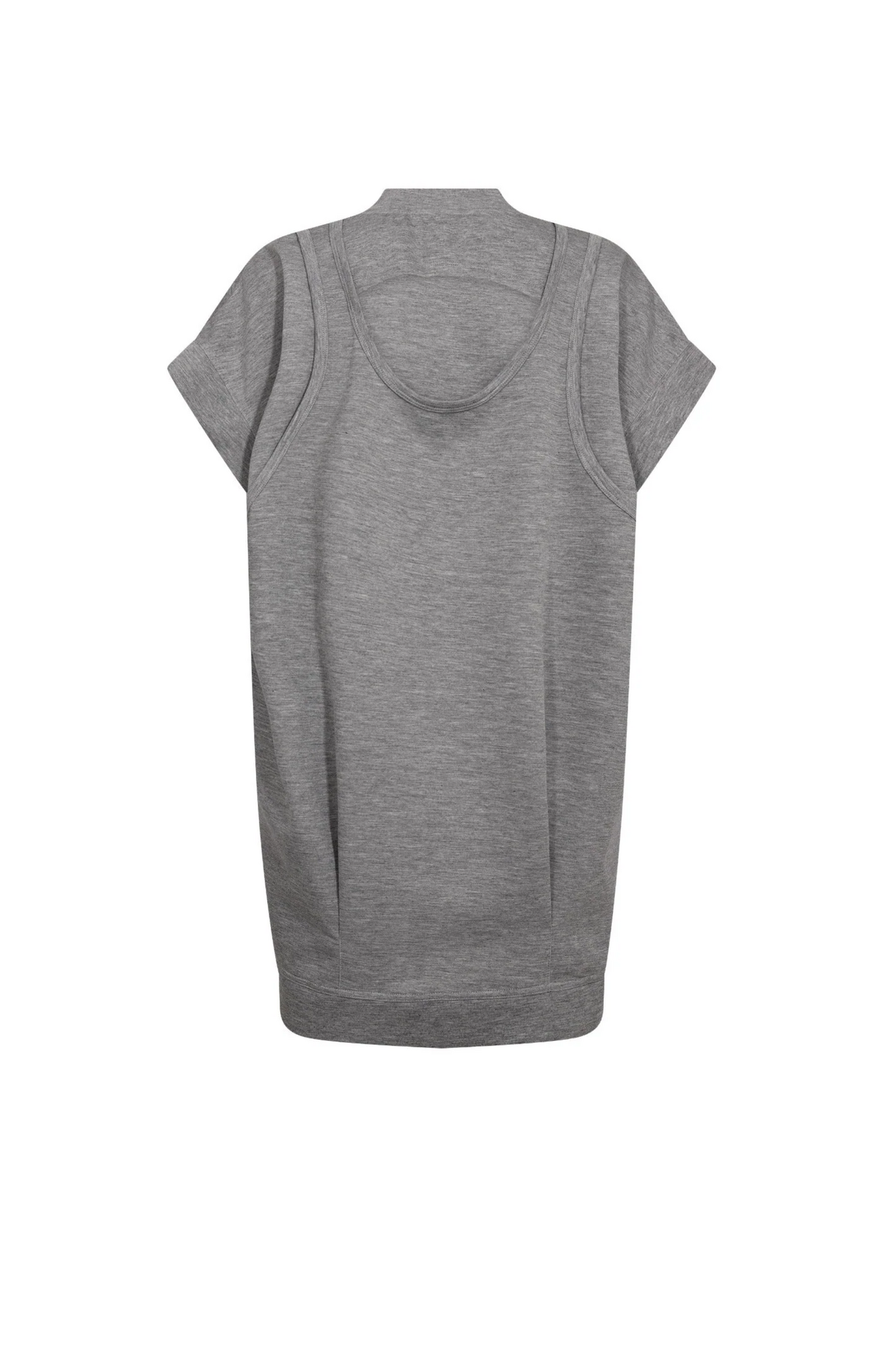 De Lance Sweat Dress van Co’couture in Grey Melange is een comfortabele sweater jurk met een ronde hals en korte mouwen met een verlaagde schoudernaad. Het model heeft een bijzonder detail aan de achterkant met een open rug en een hemdlaag die over de jurk valt, wat zorgt voor een speels en uniek effect.