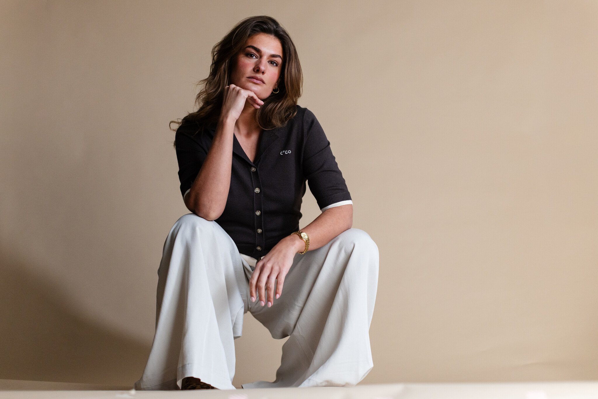 De LueCC Crop Cardigan van Co’Couture is een kort model met een V-hals en een knoopsluiting aan de voorkant. Het vest is voorzien van korte mouwen, geribde boorden en een subtiele geborduurde logo-opdruk, wat zorgt voor een verfijnde afwerking.