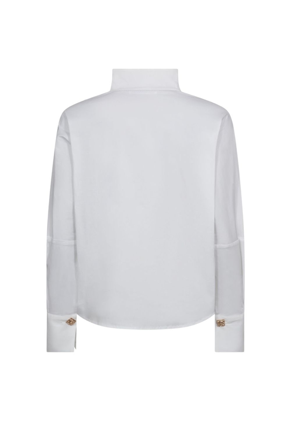 De Sanna Asym Button Blouse van Co'couture is een stijlvolle blouse in een witte kleur. Het item heeft een hoge hals en lange mouwen met manchetten. De blouse is voorzien van een unieke doorlopende knoopsluiting die van de rechter schouder tot aan het einde van de mouw loopt. De prachtige gouden vierkante knopen voegen een elegante touch toe.