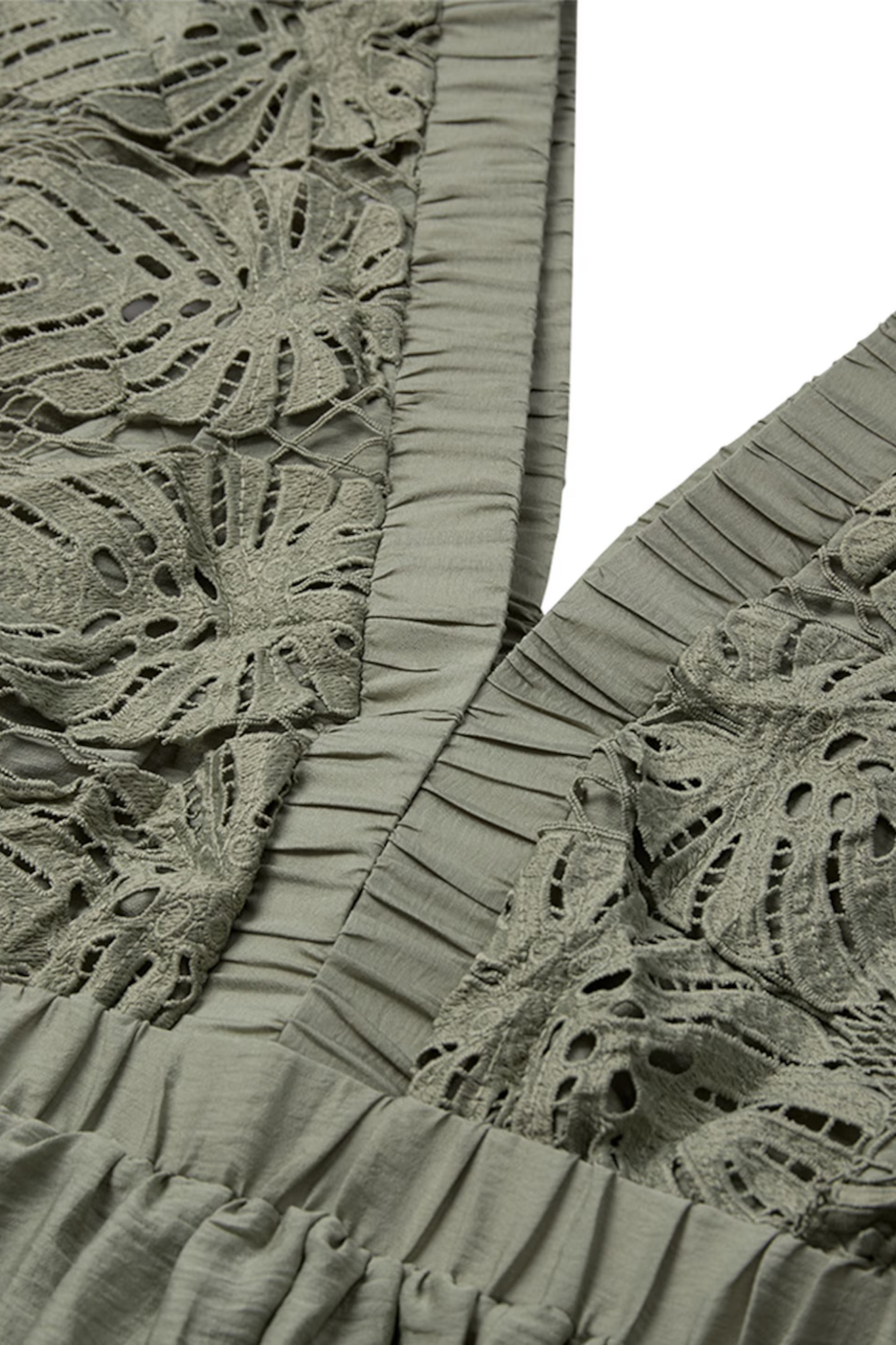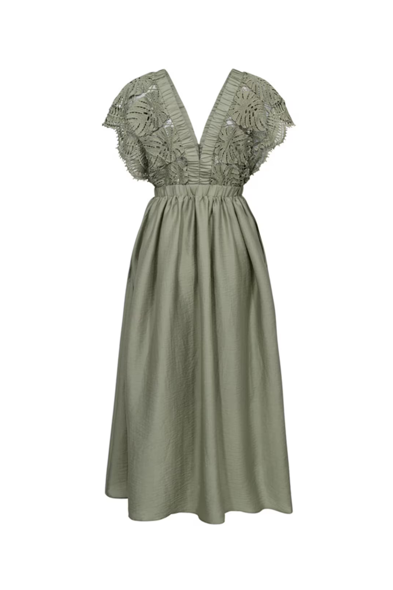 De Copenhagen Muse Cole Dress in Seagrass is een betoverende maxi-jurk die natuurlijke elegantie combineert met verfijnde details. Het ontwerp valt op door de diepe, elastische V-hals en de prachtige broderie op het lijfje en de korte mouwen, wat de jurk een romantische uitstraling geeft. Dankzij de elastische taille en de soepelvallende rok op enkellengte biedt dit item zowel een vrouwelijk silhouet als een hoog draagcomfort in een rustgevende zeegroene tint.