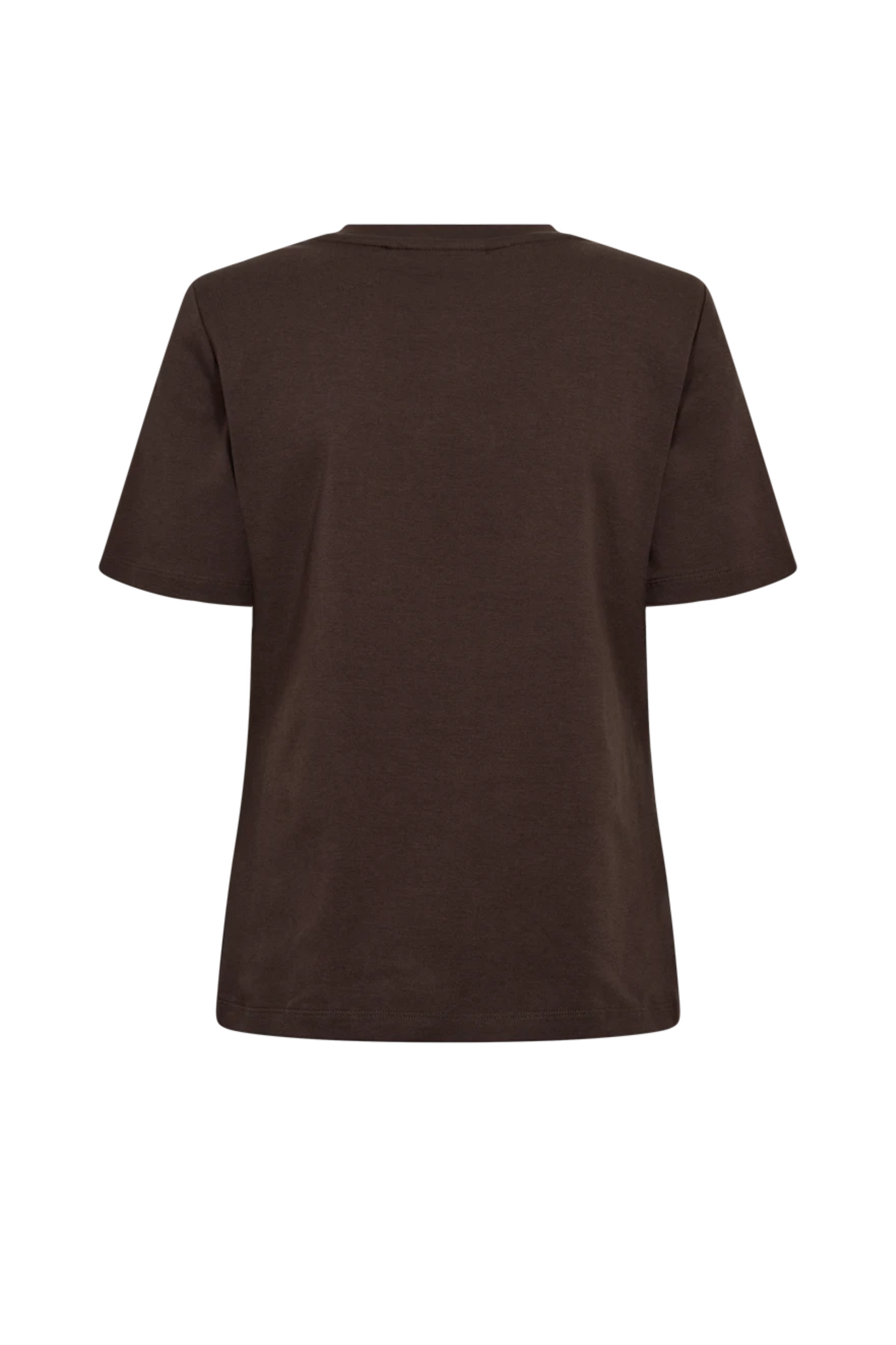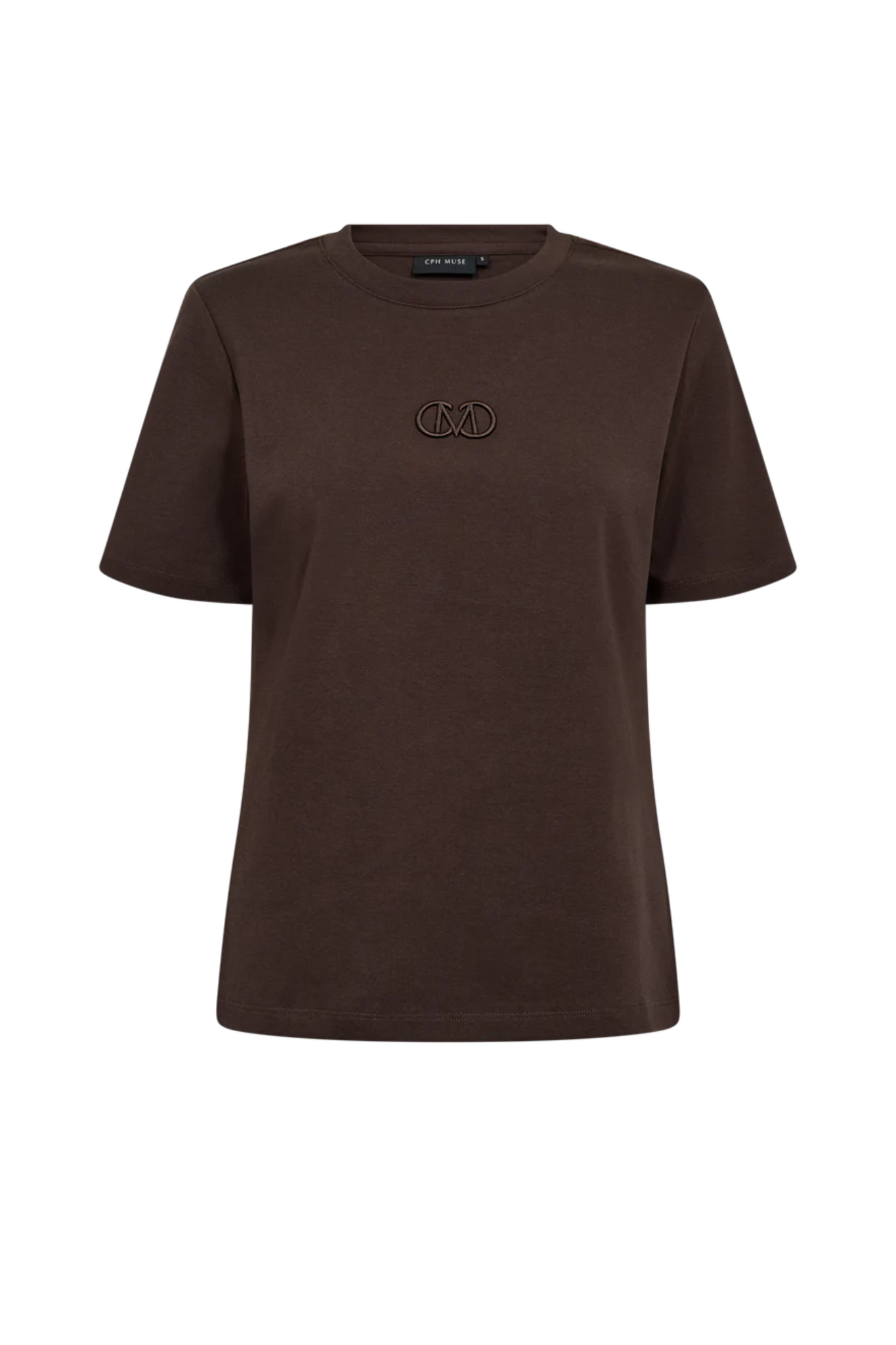 De Muse Tee van Copenhagen Muse in Mulch is een T-shirt met een ronde hals en korte mouwen. Het model heeft een geborduurde logo-opdruk, wat zorgt voor een subtiel en verfijnd detail.