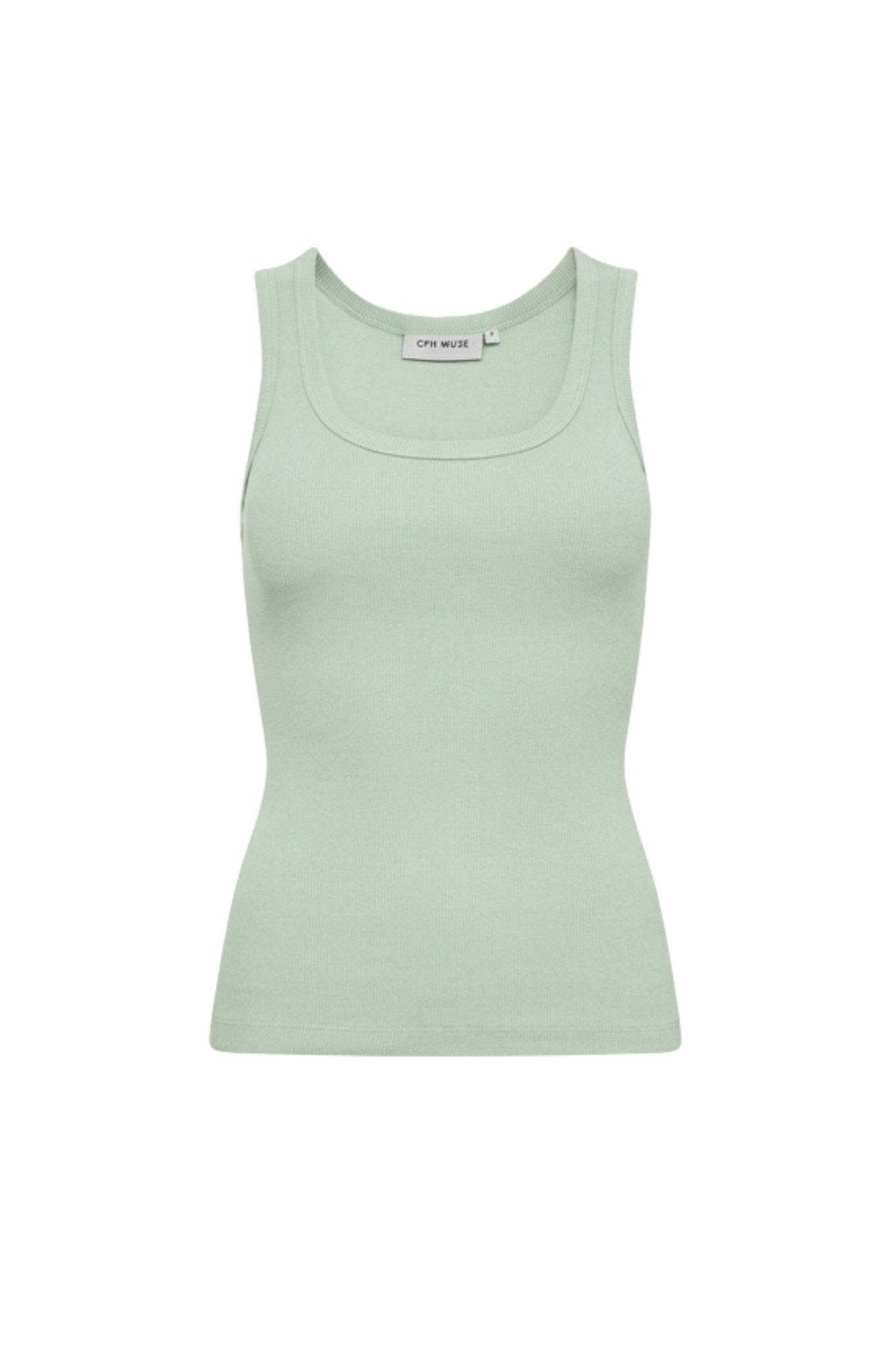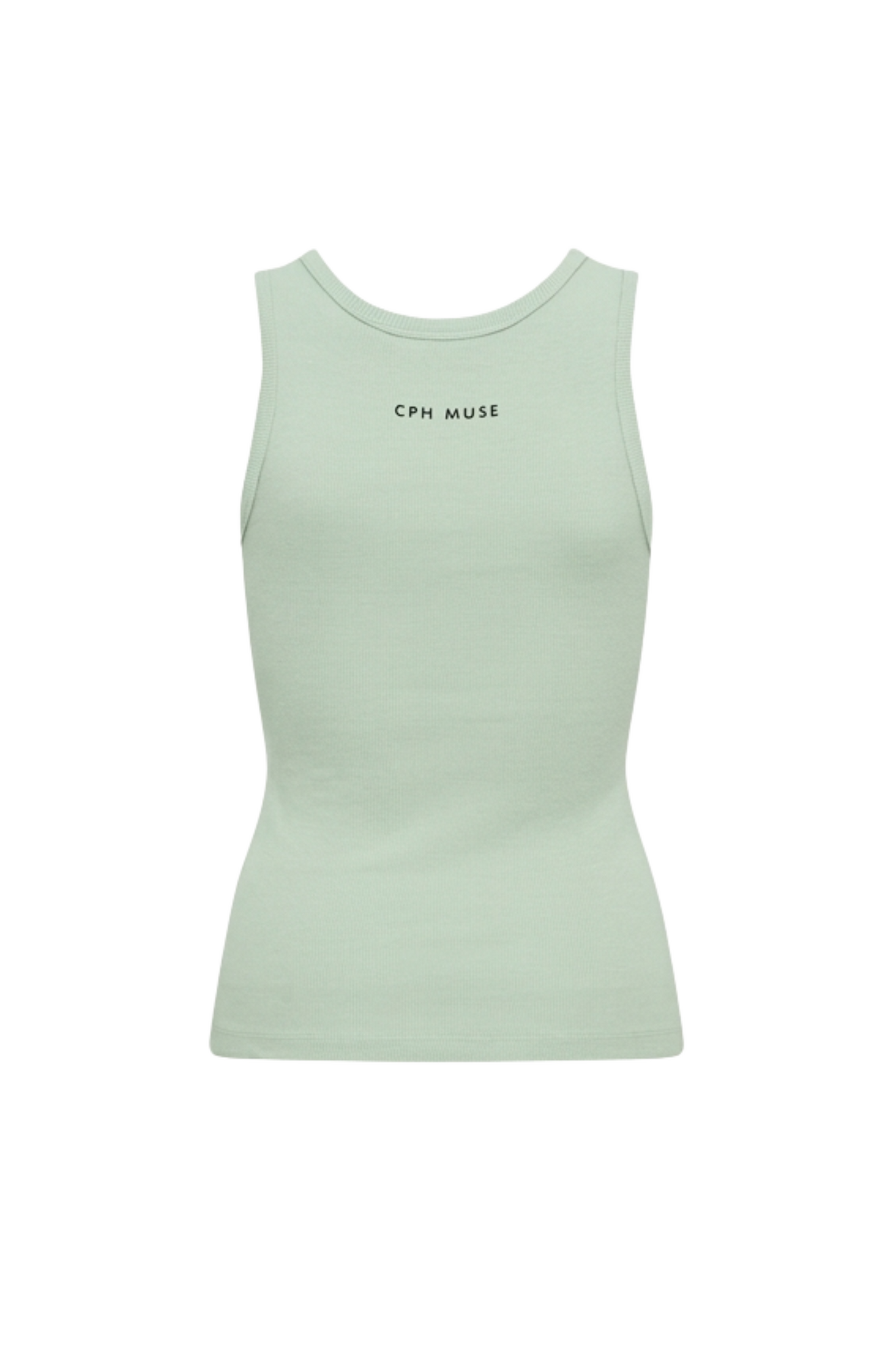 De Siv Top van Copenhagen Muse in Green Tint is een mouwloze top met een ronde hals. De geribde structuur zorgt voor een aansluitende en comfortabele pasvorm. Op de achterkant zit een subtiele logo-opdruk als detail.