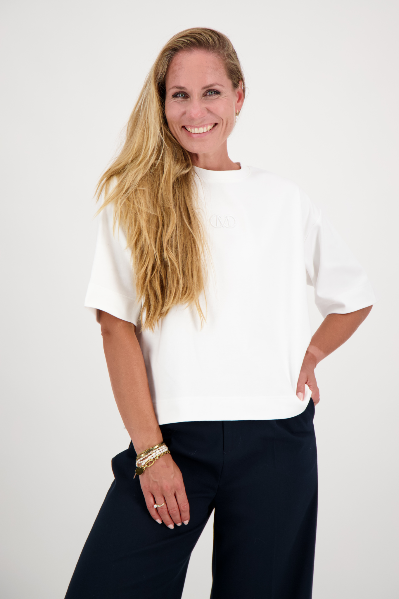 De Muse Tee van Copenhagen Muse in jet stream is een tijdloze, comfortabele basic met ronde hals en korte mouwen. Het subtiel geborduurde logo op de borst voegt een luxe touch toe. Ideaal om te combineren met jeans, rokken of shorts voor een stijlvolle, casual outfit die elke dag draagbaar is.
