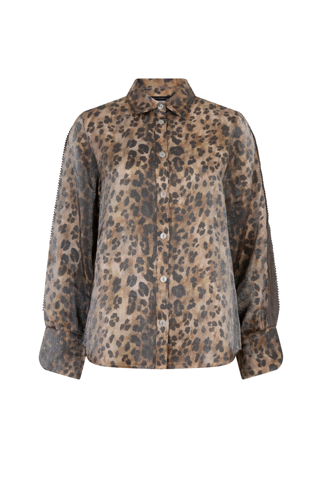 De Leopard Blouse van Donna Dura is een stijlvol item met oog voor detail. De blouse heeft een klassieke kraag, lange mouwen en een normale pasvorm. De opvallende leopard print in bruintinten is de basis, maar de blouse wordt verfijnd door de prachtige broderie details die in een lijn over de mouwen lopen. Het item heeft een doorlopende knoopsluiting aan de voorzijde.