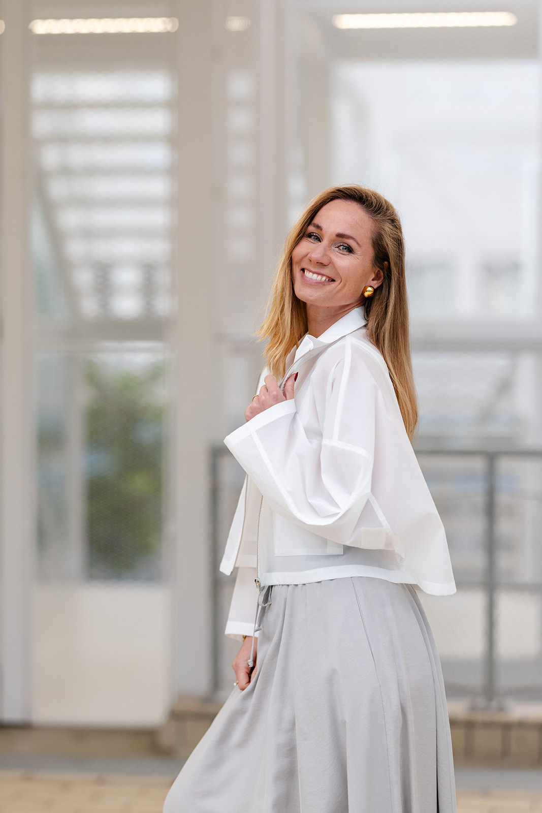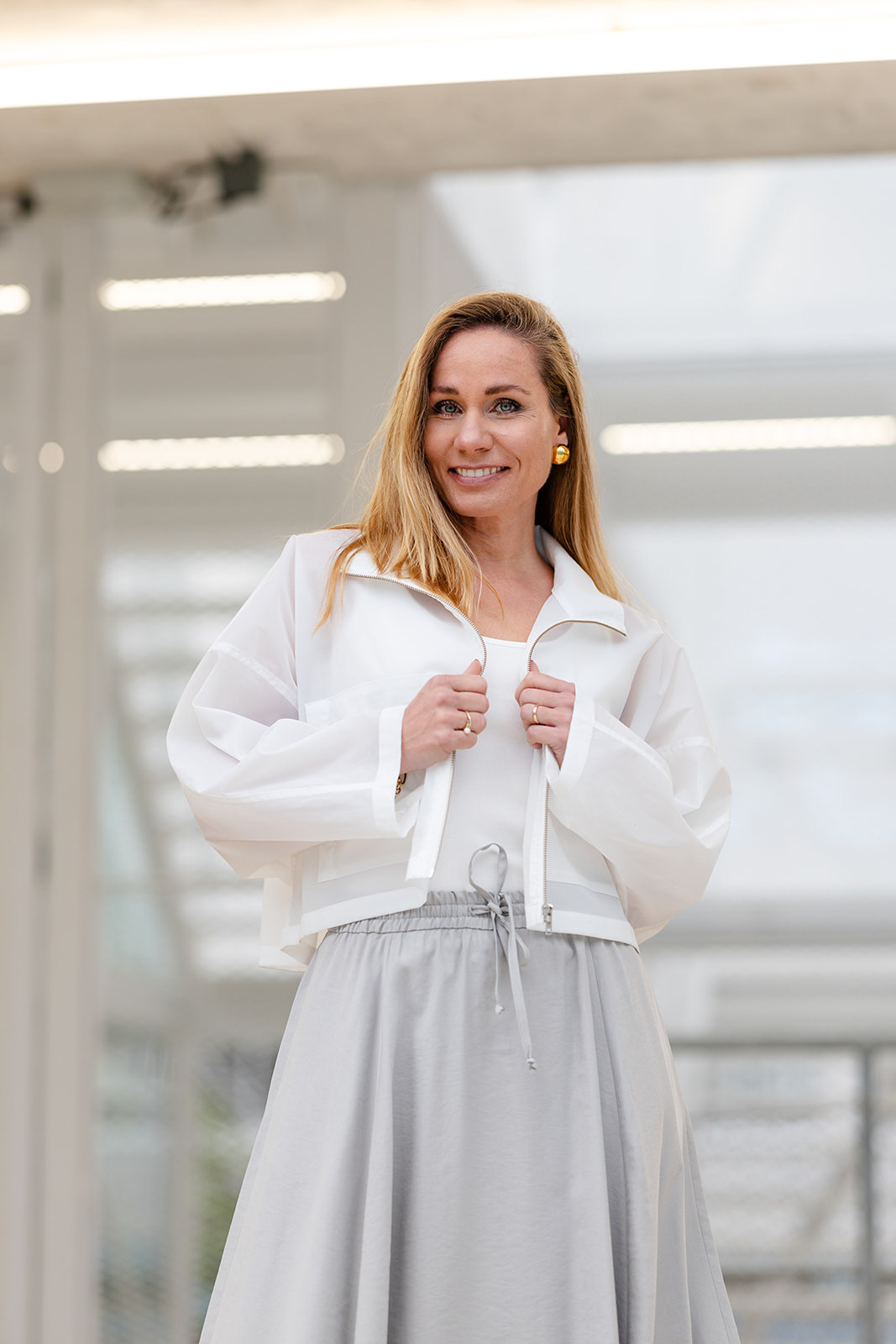 Het Drykorn Elstow Jacket in White is een modern, kort gesneden jasje met een minimalistische en sportieve uitstraling. Dit lichtgewicht model is uitgevoerd in een frisse witte tint en heeft een ruime, boxy pasvorm met verlaagde schoudernaden. De hoge opstaande kraag en de doorlopende zilverkleurige ritssluiting geven het ontwerp een strakke, eigentijdse finish die perfect is voor een gelaagde look.