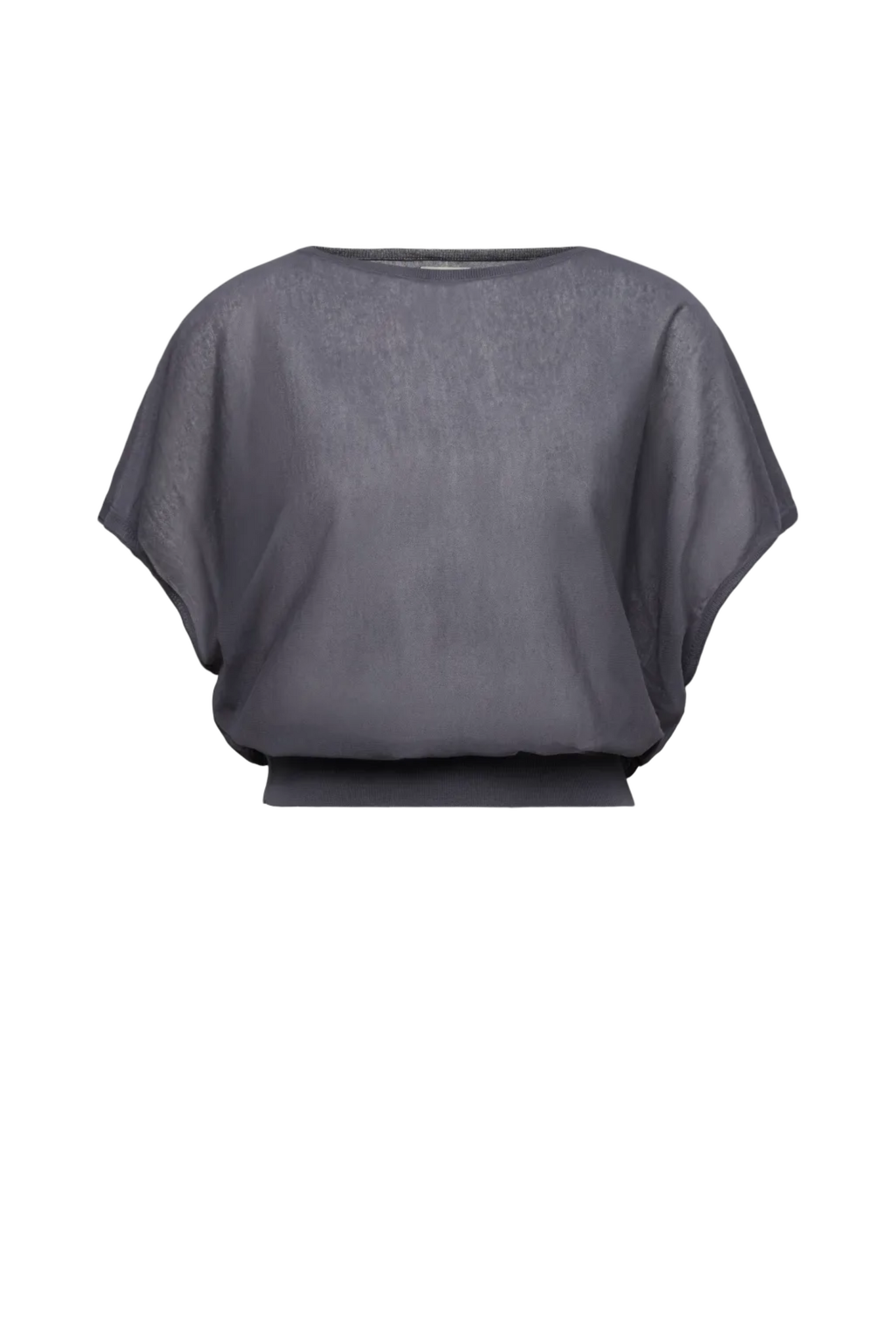 Het Gerlotta T-shirt van Drykorn in Iron is een fijngebreid, licht transparant T-shirt met een ronde hals en verlaagde schoudernaad, waardoor de mouwen soepel vallen. De iets strakkere tailleband zorgt voor een subtiel ballon-effect, waardoor het T-shirt zowel comfortabel als stijlvol is.