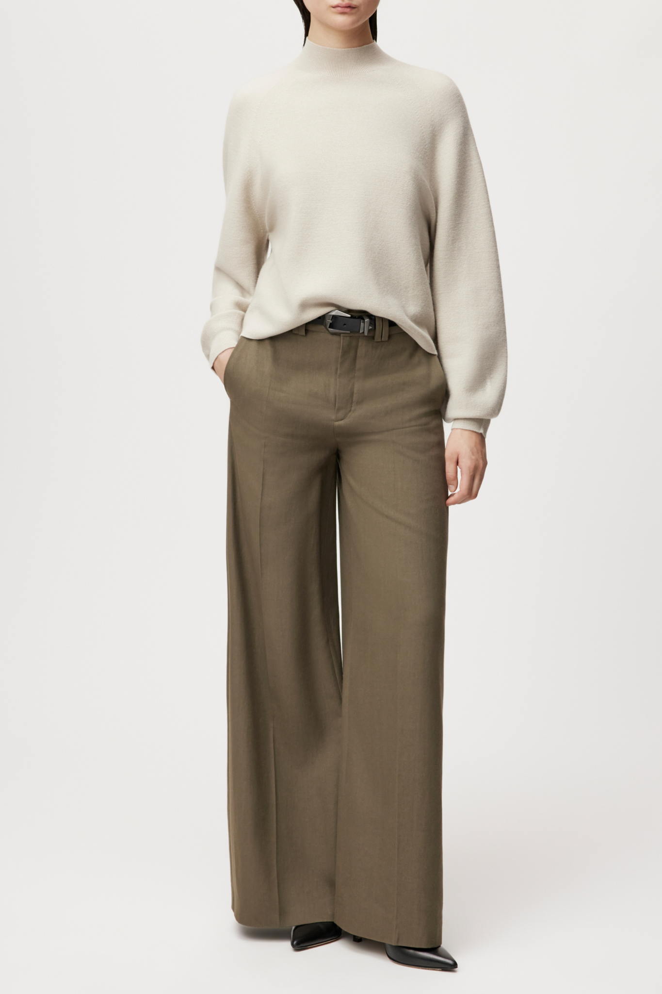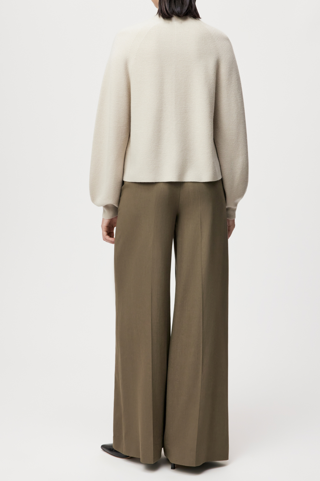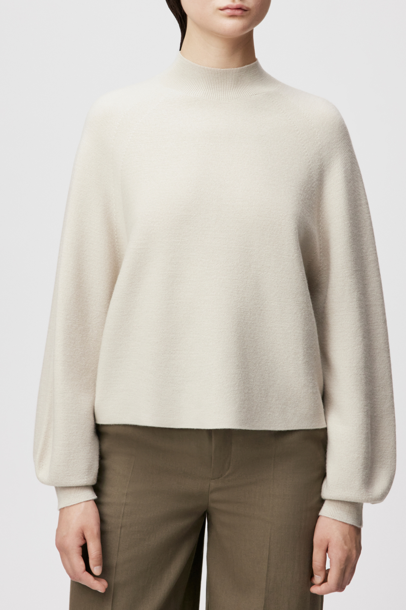 De Kimoni Pullover van Drykorn is een fijn gebreide trui in een zandkleurige tint. De trui heeft een hoge hals en lange mouwen met elastische manchetten. De geribde stof zorgt voor een klassieke en stijlvolle uitstraling.