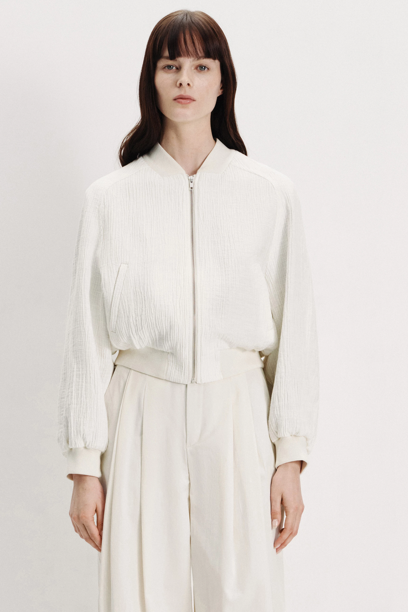 Het Marham Bomberjack van Drykorn in Undyed is een stijlvolle bomber met een ritssluiting en een comfortabele pasvorm. Het jack heeft een elastische ribbelkraag, manchetten en tailleband, een soepele crepe-look en praktische zakken aan de voorzijde. Gevoerd voor extra comfort en perfect voor een casual-chic look.