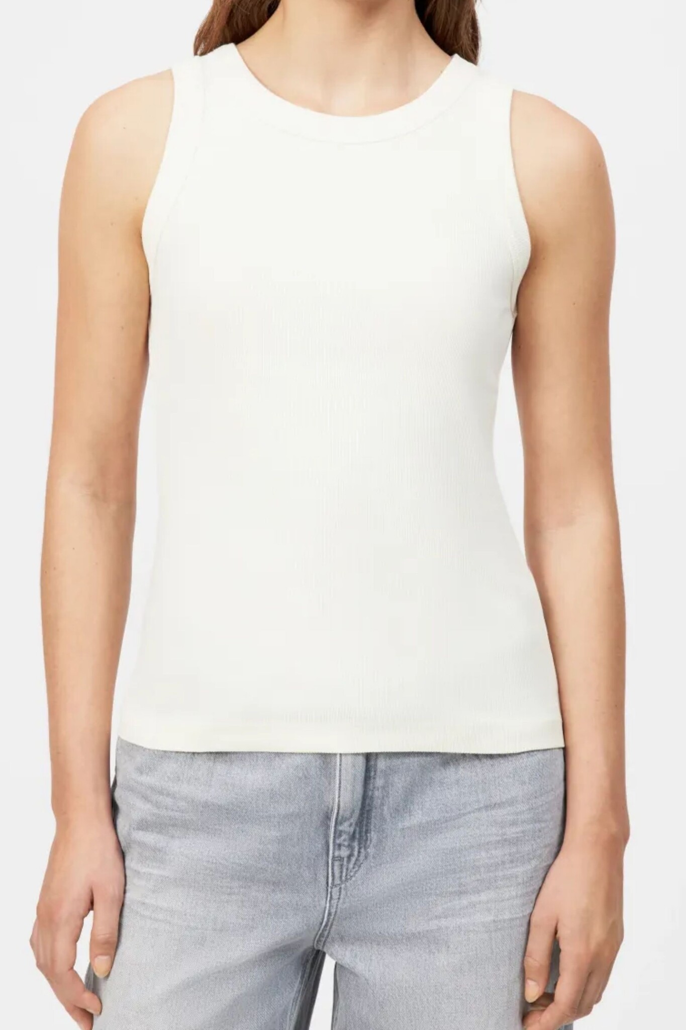 De Olina Tanktop van Drykorn is een tijdloze en veelzijdige essential in een frisse Off White kleur. Dit mouwloze model heeft een klassieke ronde hals en is vervaardigd uit een hoogwaardige, elastische geribde stof. Dankzij de nauwsluitende pasvorm en het minimalistische ontwerp is deze top de perfecte basis voor elke gelaagde look of een stijlvolle zomeroutfit.