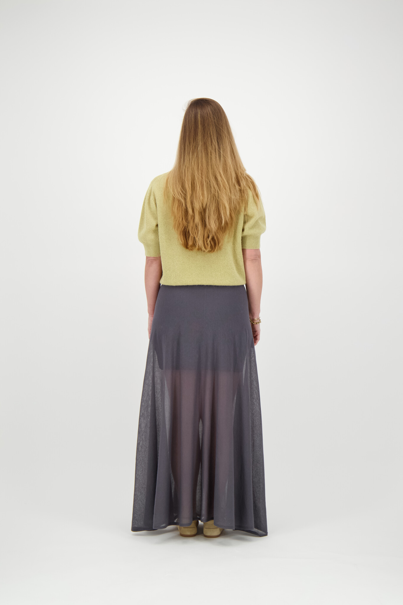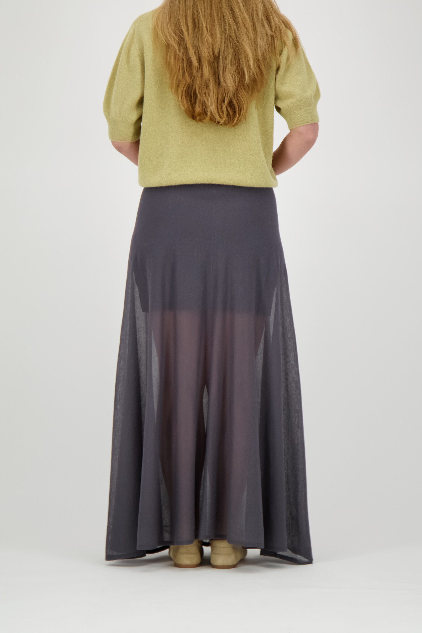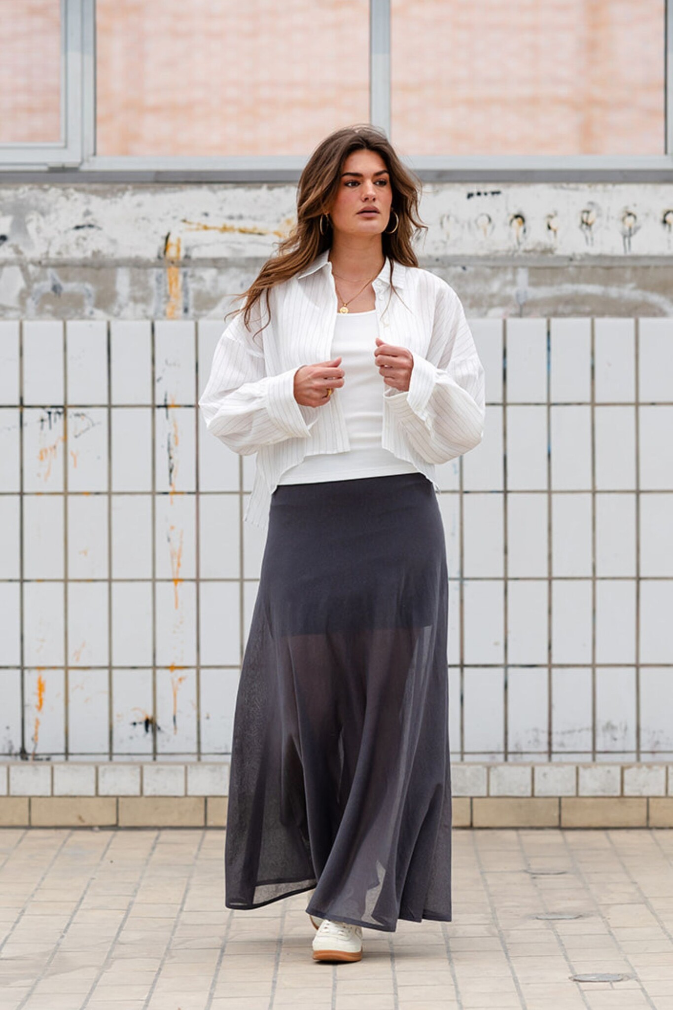 De Drykorn Tensya Skirt in Grey is een elegante maxi-rok met een hoge, elastische tailleband en een vrouwelijk A-lijn silhouet. Het model is vervaardigd uit een verfijnde, doorzichtige stof die zorgt voor een luchtige en moderne uitstraling. Om optimaal draagcomfort en discretie te bieden, is de rok voorzien van een kortere onderrok.