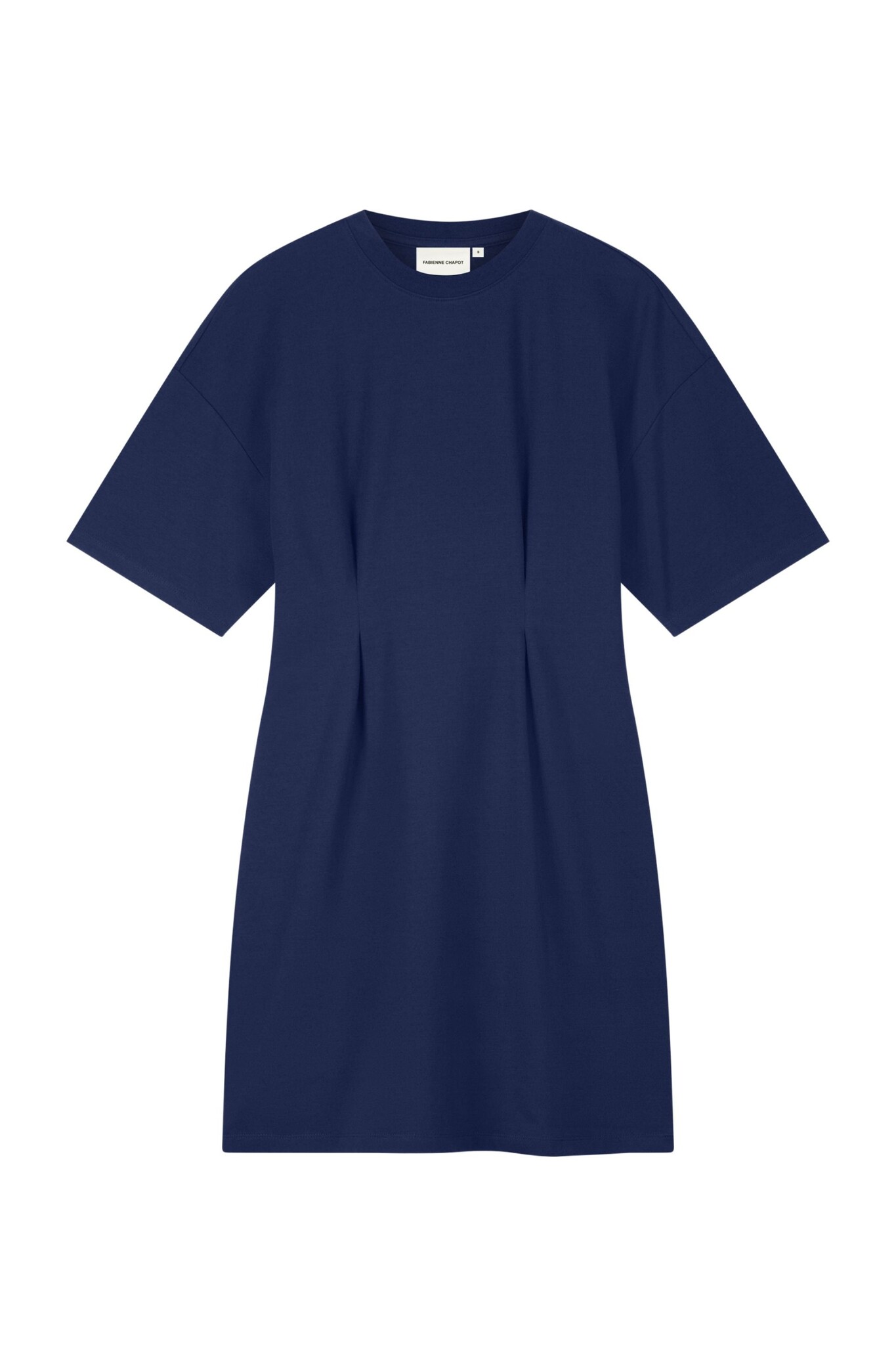 De Astan Dress van Fabienne Chapot is een minimalistische en stijlvolle T-shirt jurk in de diepe kleur Maritime Blue. Deze korte jurk heeft een klassieke ronde hals, korte mouwen en een subtiel getailleerd silhouet dankzij de verfijnde plooien in de taille. Het is een veelzijdig item dat moeiteloos gecombineerd kan worden voor zowel een sportieve als een geklede dagelijkse look.