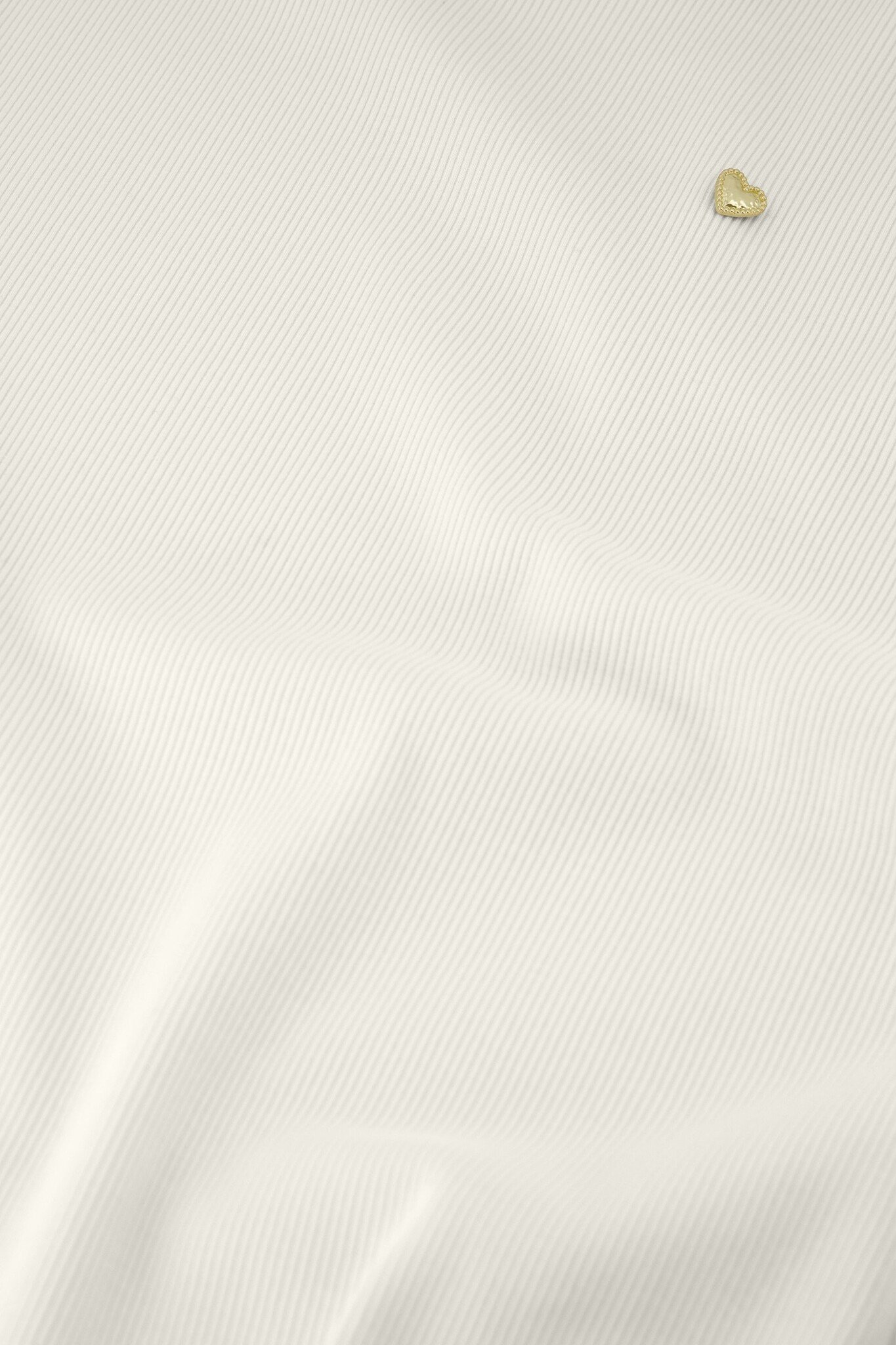Het Tanja T-shirt van Fabienne Chapot is een verfijnde basis-essential in de kleur Cosy White. Dit nauwsluitende shirt is vervaardigd van een zachte, fijngebreide ribstof en heeft een klassieke ronde hals met korte mouwen. Een subtiel goudkleurig hartje op de borst geeft dit tijdloze ontwerp een kenmerkende en vrouwelijke touch.
