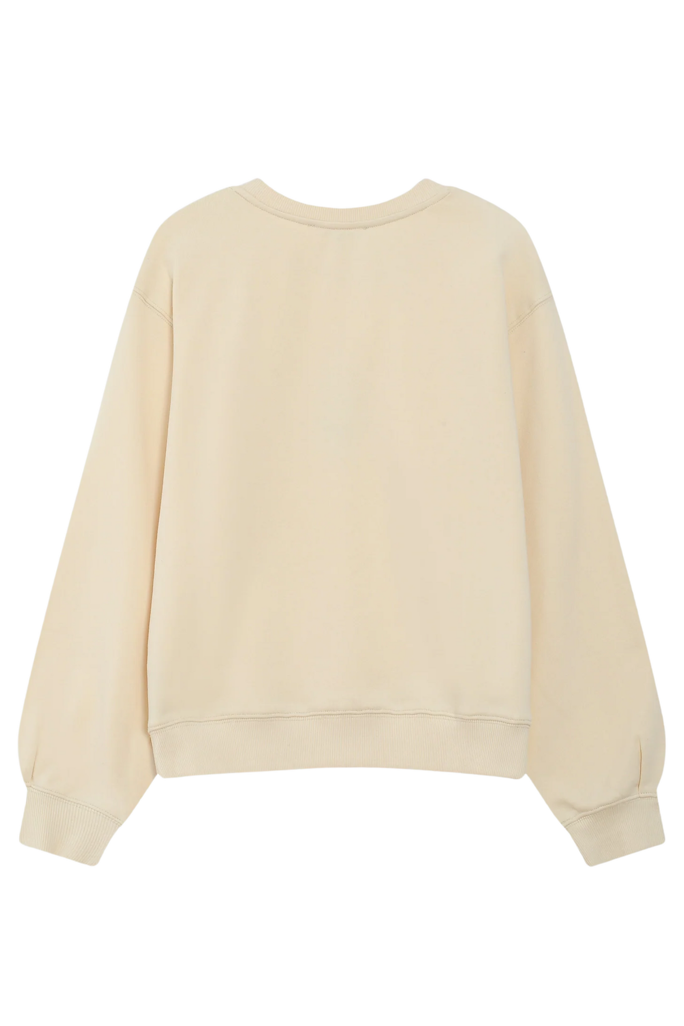 De Vonan Sweater van Grace & Mila in Vanille is een klassieke sweater met een ronde hals en lange mouwen. De geribde boorden zorgen voor een comfortabele pasvorm en de knopen op de linker schoudernaad geven een subtiel en stijlvol detail.