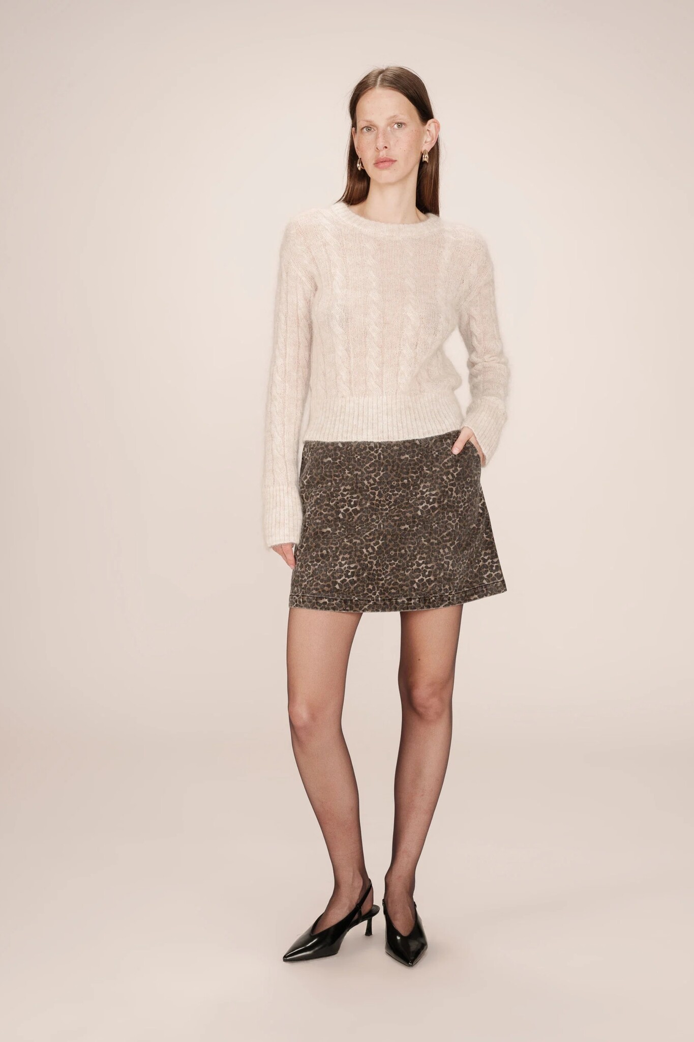 De Sparta Skirt van Grace & Milla is een stoere en trendy rok. Deze rok is uitgevoerd in klassieke denim stof en heeft een opvallende leopard print. De rok valt tot op de dijlengte en sluit netjes met een ritssluiting aan de achterzijde. Voor extra functionaliteit is de rok voorzien van handige steekzakken in de zijden. Dit is een speelse en modieuze rok die elke outfit een boost geeft.