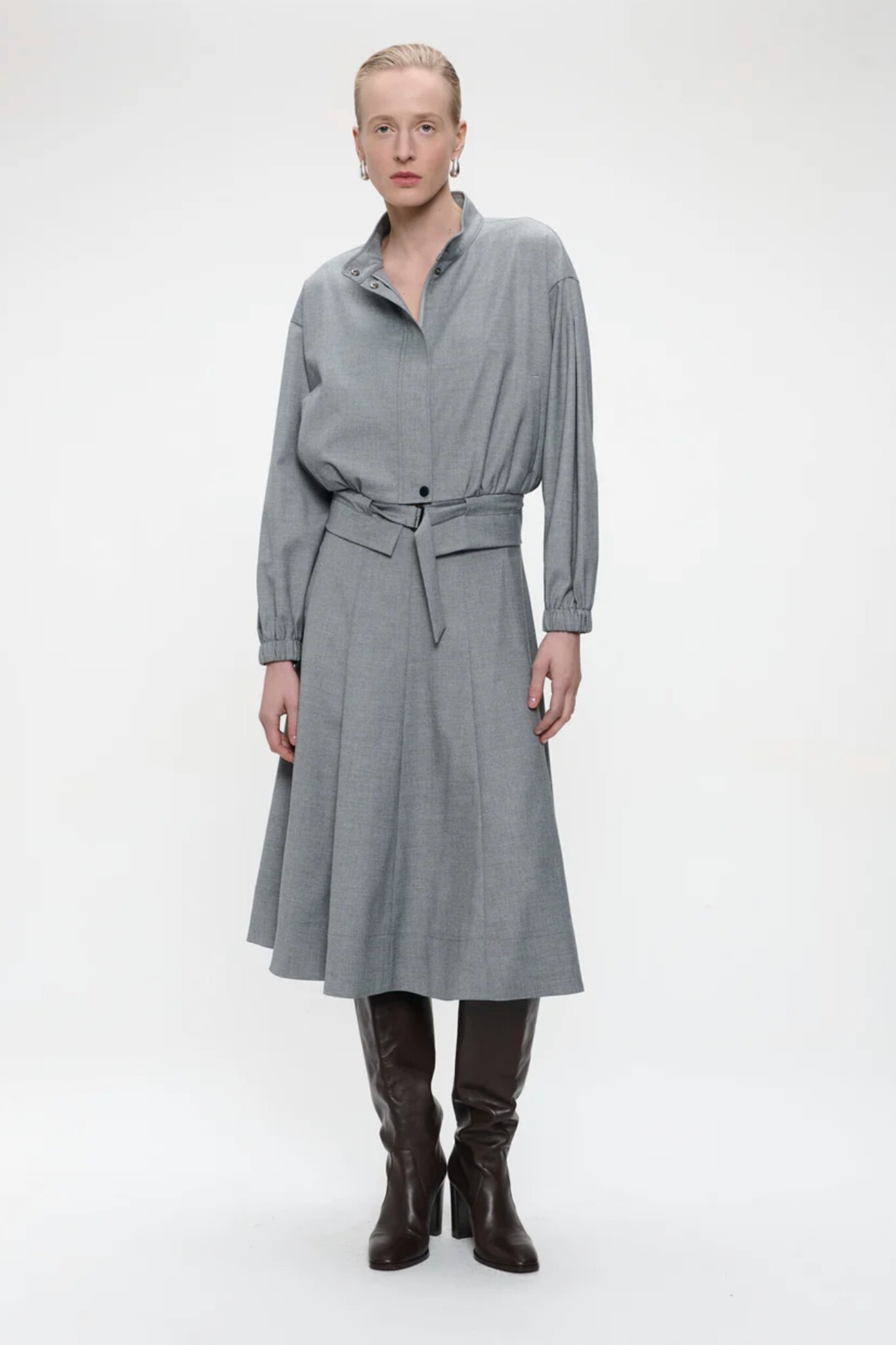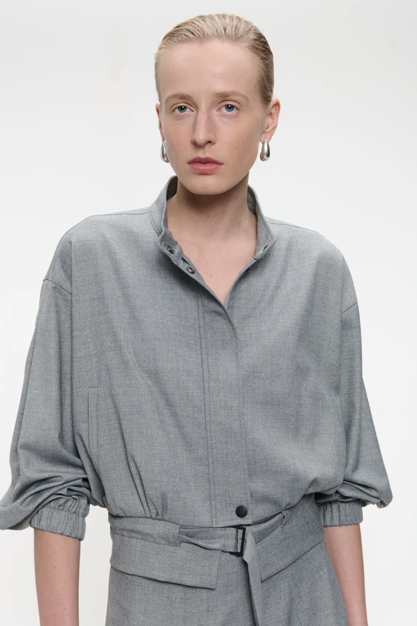 De Ian Viscose Jacket van Jane Lushka is een elegante en veelzijdige jas. Dit jasje in de kleur Light Grey heeft een loose fit en is gemaakt van soepele viscose. Het jasje is voorzien van een hoge hals die sluit met een twee-drukknoopsluiting en een doorlopende verborgen ritssluiting aan de voorzijde. De lange mouwen en de elegante afwerking worden gecompleteerd door een ceintuur om de taille te accentueren, wat een flatterend silhouet creëert ondanks de loose fit.