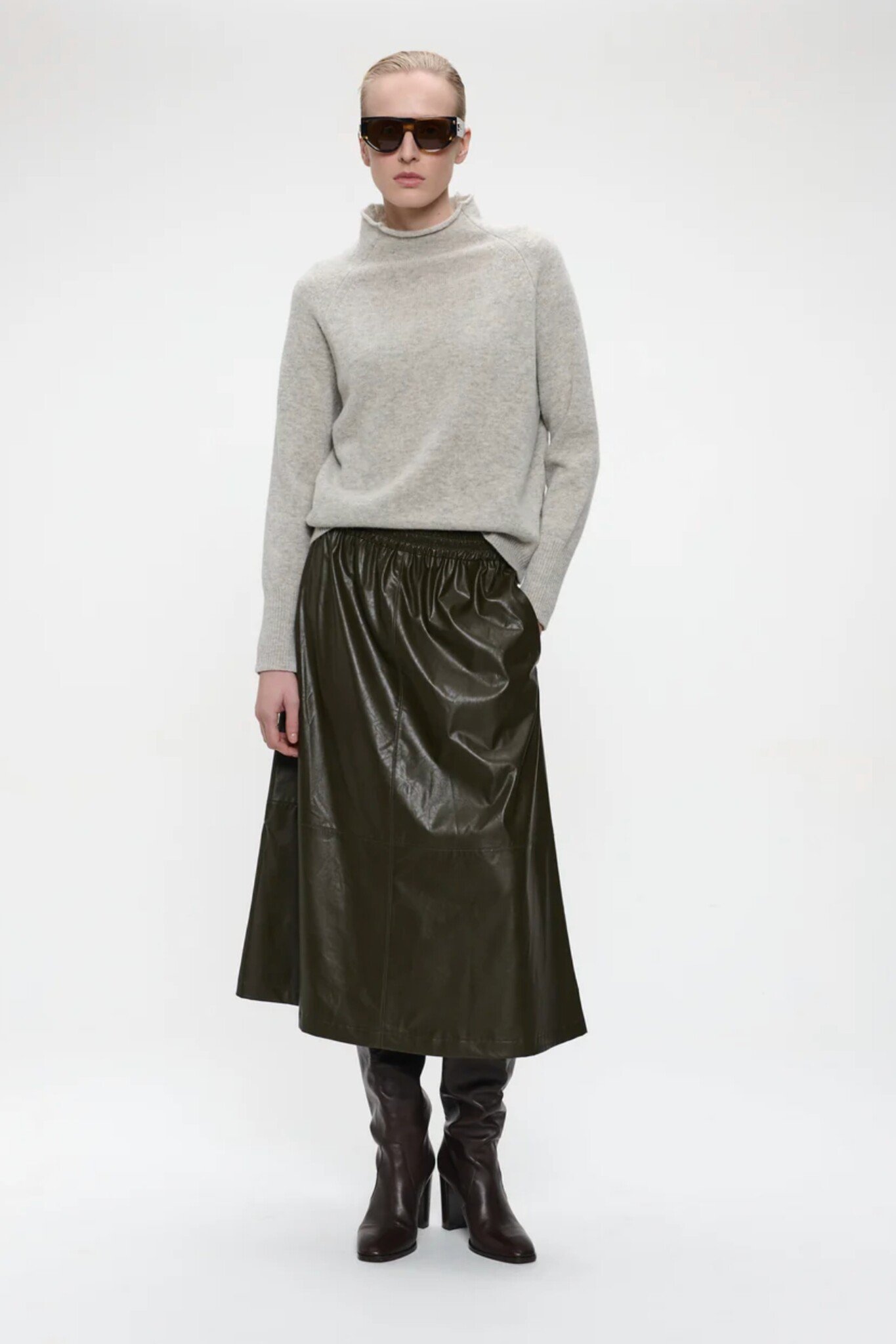 De Pullover Seamless van Jane Lushka is een comfortabele en strakke basis trui. Deze pullover in de kleur Grey is gemaakt van een fijn gebreide stof en heeft een naadloze afwerking, wat zorgt voor een hoog draagcomfort en een strak silhouet. De trui is voorzien van een warme hoge hals en lange mouwen.