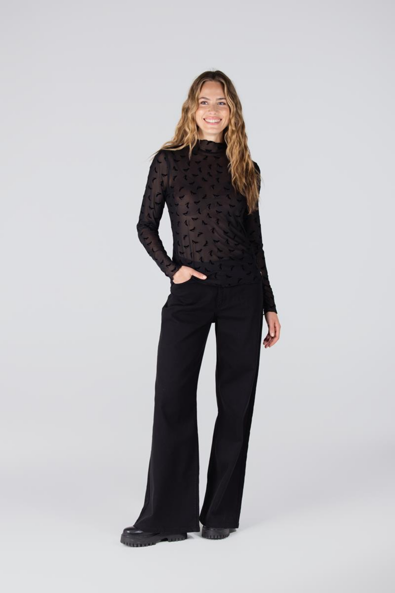De Jula Mesh Top van Jansen Amsterdam is een stijlvolle en comfortabele top met een coltrui en lange mouwen. Het aansluitende model is uitgevoerd in mesh met een subtiele print, waardoor de top een elegante en speelse uitstraling krijgt. Perfect om te combineren met een rok of broek voor een stijlvolle look.