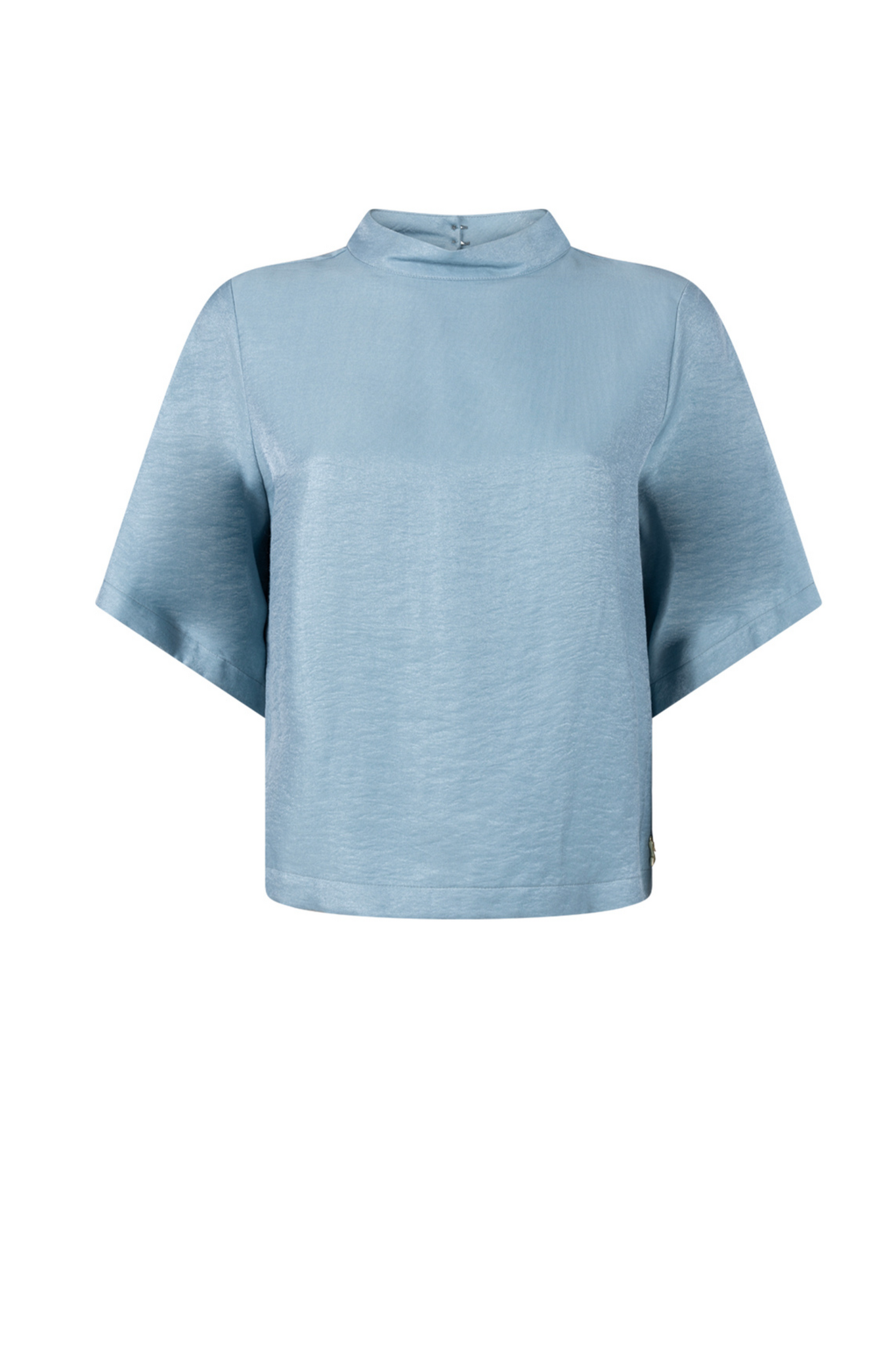 De Odile Top van Jansen Amsterdam is een elegante top in Aquamarijn met korte mouwen en een hoge nek. Het model heeft een subtiele glans in de stof en een klein rugknoopje voor een verzorgde afwerking. Perfect te combineren met broeken of rokken voor een stijlvolle look.