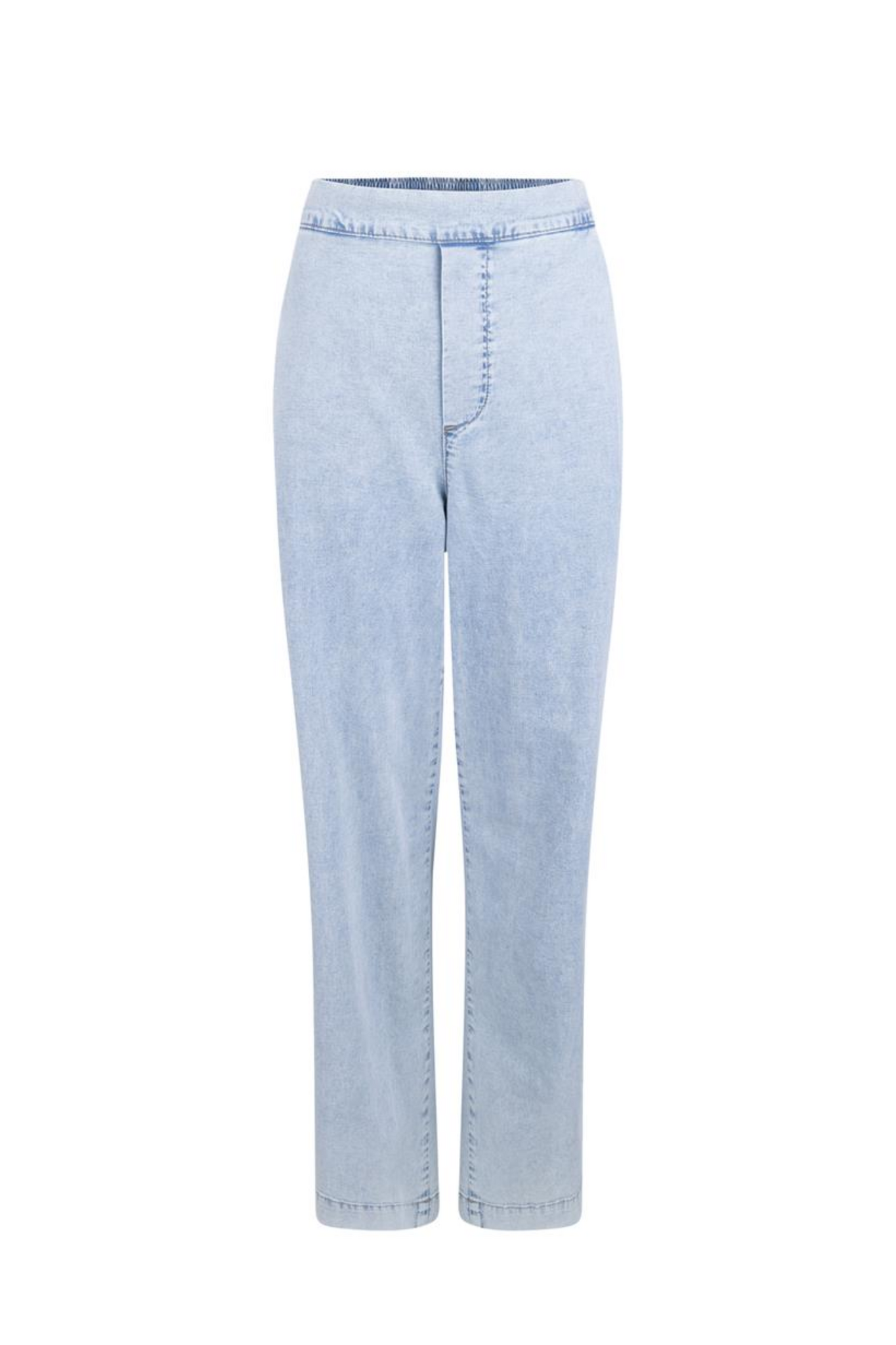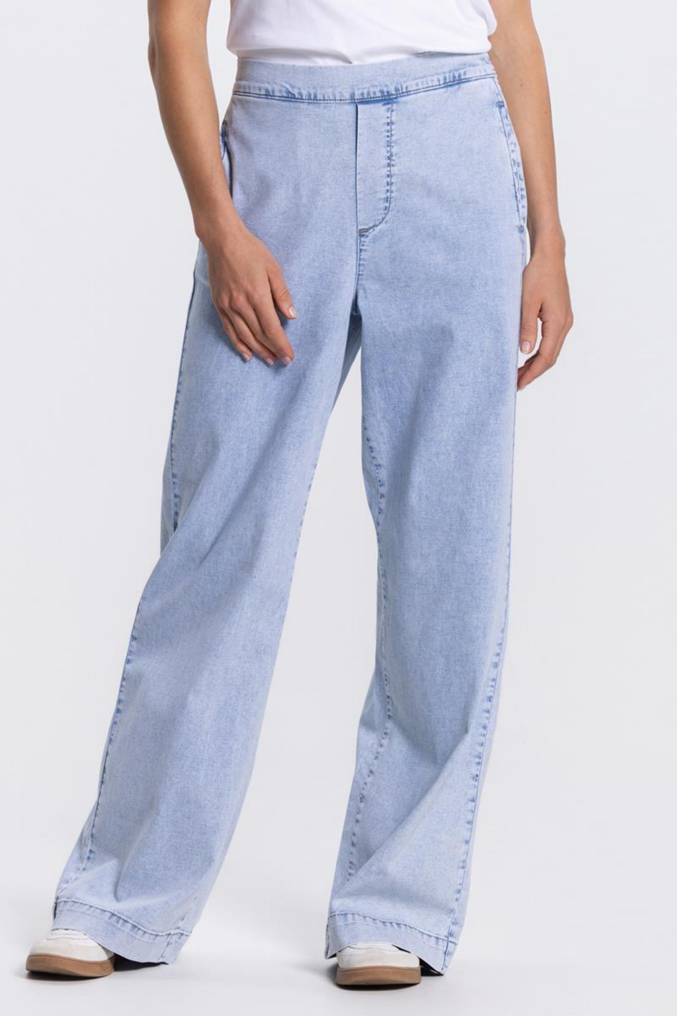 De Saar Broek van Jansen Amsterdam is een long wide denim broek met een comfortabele pasvorm. De broek heeft een wide-leg model en een elastische tailleband aan de achterkant voor extra draagcomfort. De lichte demin kleur maakt de broek gemakkelijk te combineren met verschillende tops en blouses.