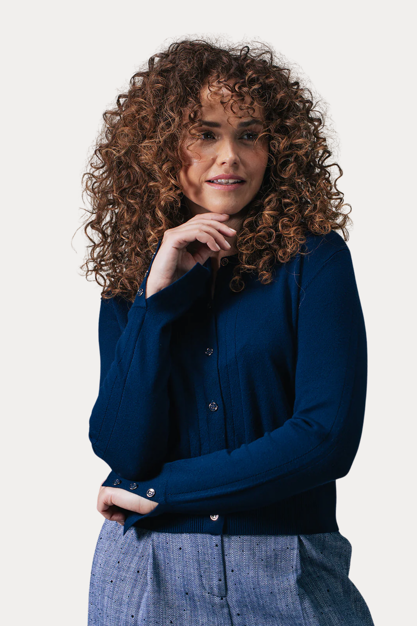 De Nima Cardigan van Label Dot is een fijngebreid vest in Donkerblauw met een ronde halslijn en lange mouwen. Het vest heeft geribde boorden en een knoopsluiting aan de voorkant, waardoor het zowel comfortabel als stijlvol is. Perfect om laagjes te creëren op koelere dagen.
