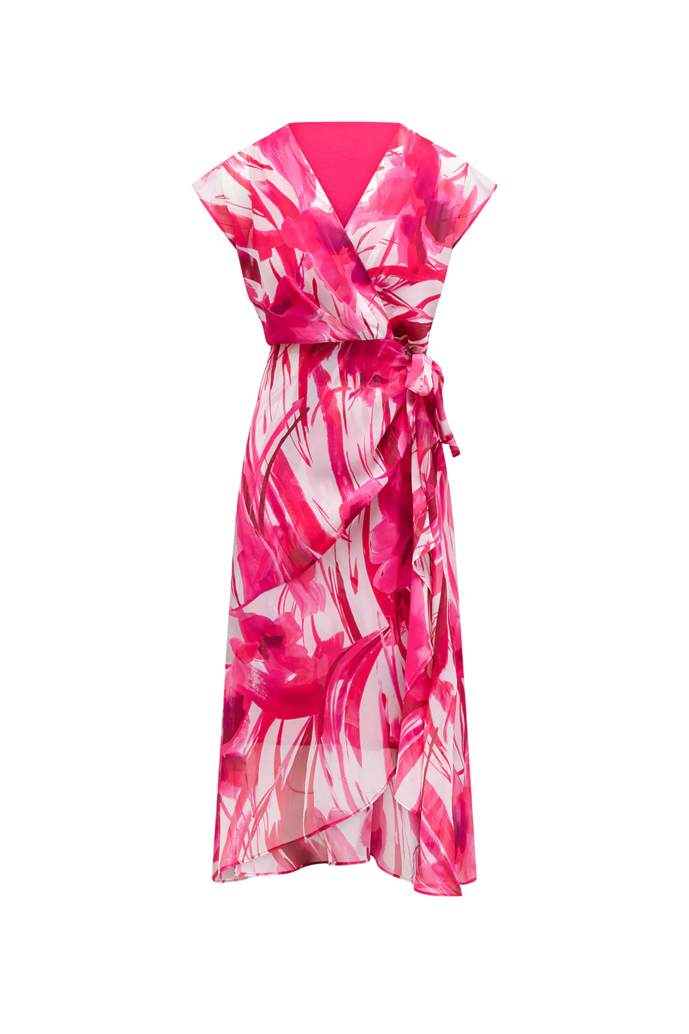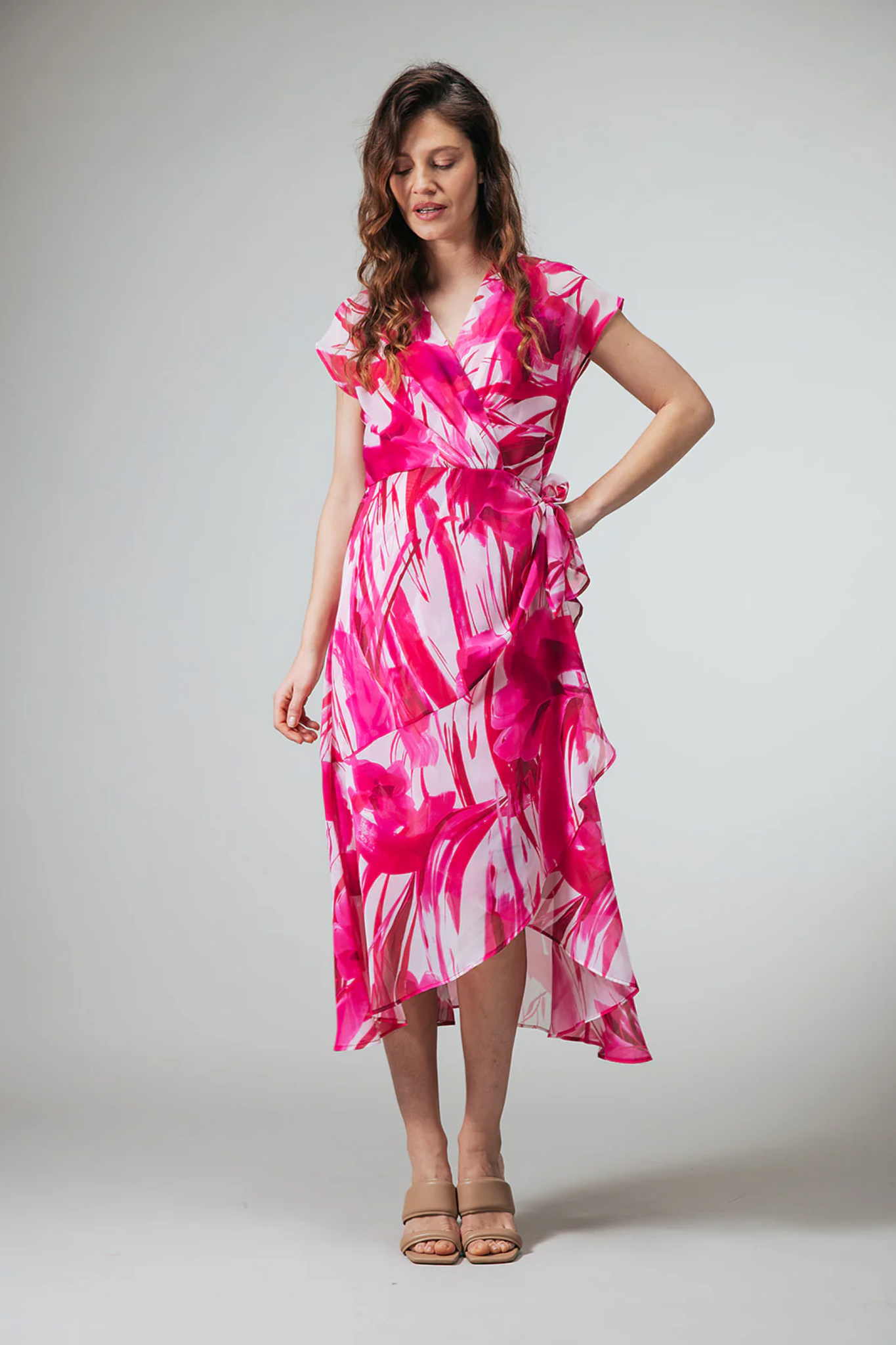 De Label Dot Sabo Jurk in Roze Multi is een levendige en vrouwelijke overslagjurk met een artistieke bloemenprint in diverse roze tinten. Het ontwerp beschikt over een flatterende V-hals en korte mouwen, waarbij de taille elegant wordt geaccentueerd door een vastgemaakt ceintuur. Deze jurk combineert een soepelvallend silhouet met een vrolijk kleurpalet, wat hem perfect maakt voor zowel zomerse feesten als stijlvolle dagelijkse gelegenheden.