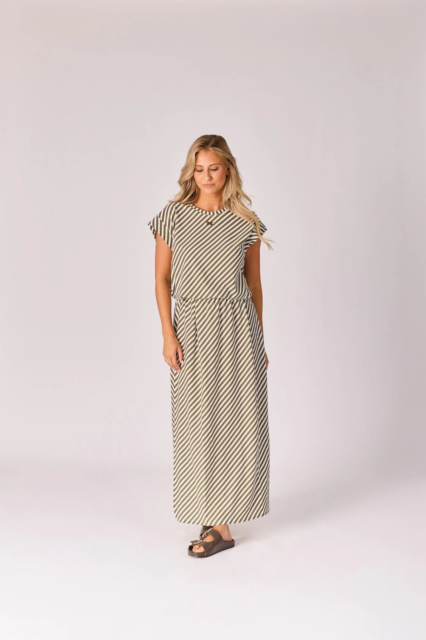 De LaLotti Ada Skirt in Green Stripe is een stijlvolle maxi-rok met een fris, diagonaal streeppatroon. Dit model in olijfgroen en wit heeft een ontspannen A-lijn silhouet dat soepel langs het lichaam valt voor een elegante zomerse look. Dankzij de elastische tailleband biedt de rok niet alleen een vrouwelijke uitstraling, maar ook optimaal draagcomfort gedurende de hele dag.