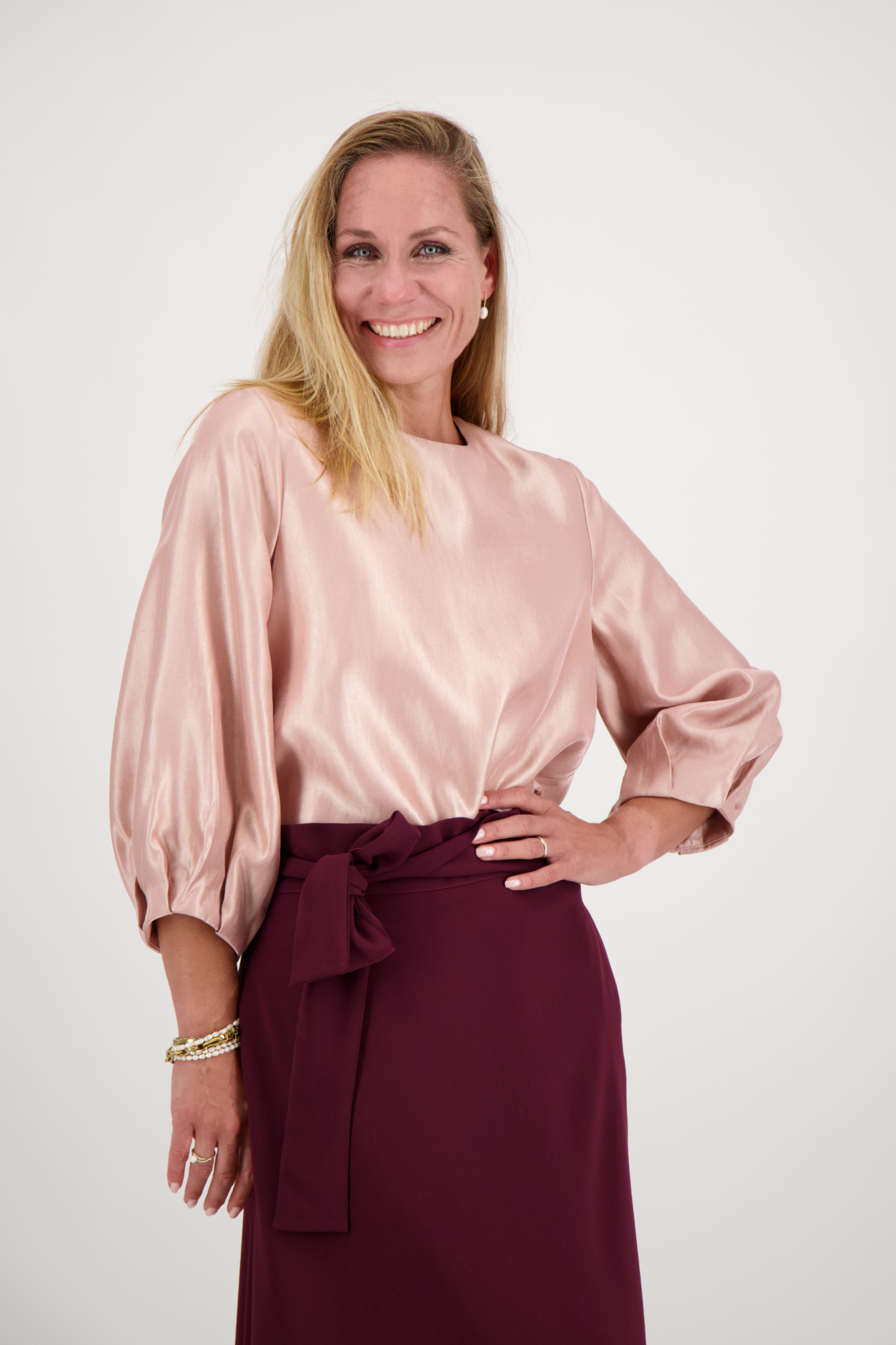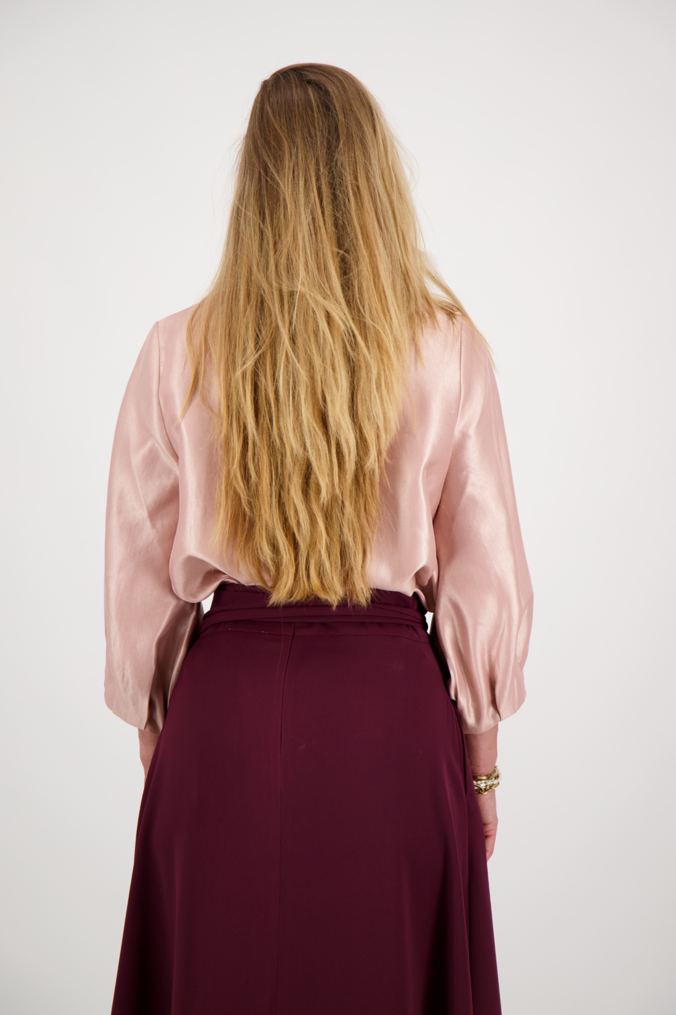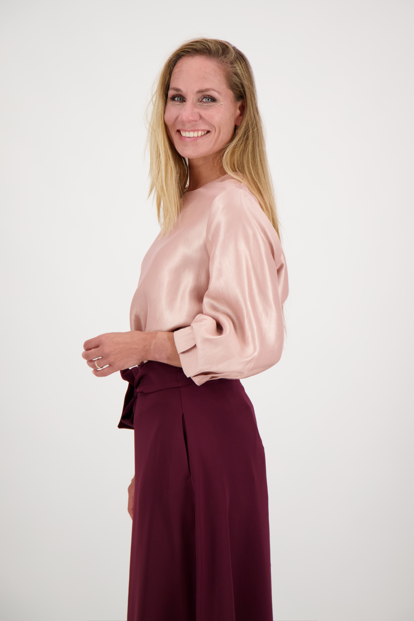 De Emma Blouse van LaLotti is een elegante blouse in de kleur light pink met een zachte satijnen look. Het model heeft een ronde hals en 3/4 mouwen, waardoor het een veelzijdige blouse is die zowel casual als gekleed gedragen kan worden. De soepele stof zorgt voor een comfortabele pasvorm en een vrouwelijke uitstraling.