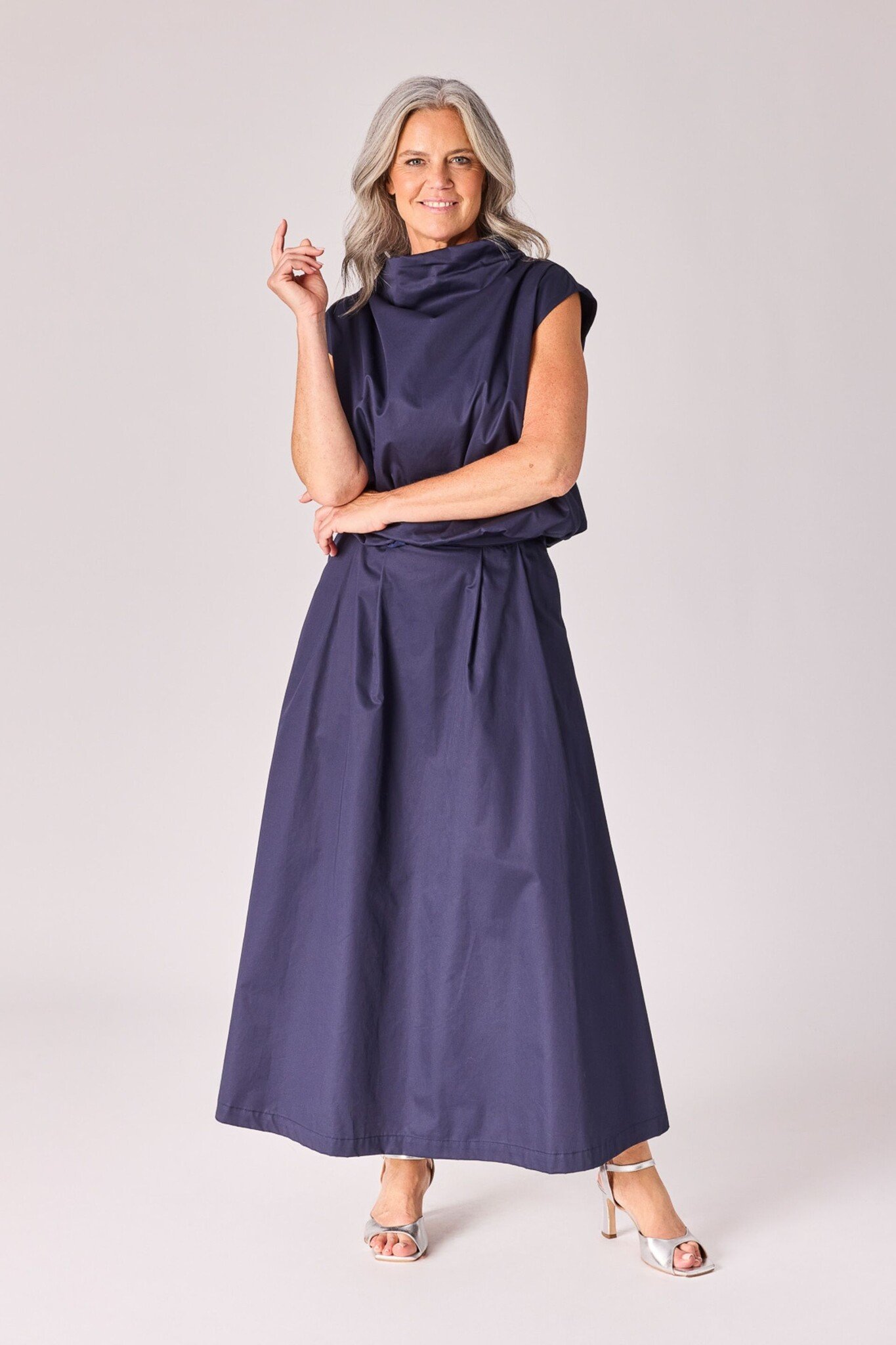 De LaLotti Raavi Top in Navy is een verfijnde, mouwloze essential vervaardigd uit 100% hoogwaardig en ademend katoen. De elegante hoge hals is voorzien van subtiele plooien, wat de top een luxueuze en vrouwelijke uitstraling geeft. Dankzij de diepblauwe kleur en het tijdloze ontwerp is dit item perfect te combineren voor zowel een zakelijke als een casual-chic look.