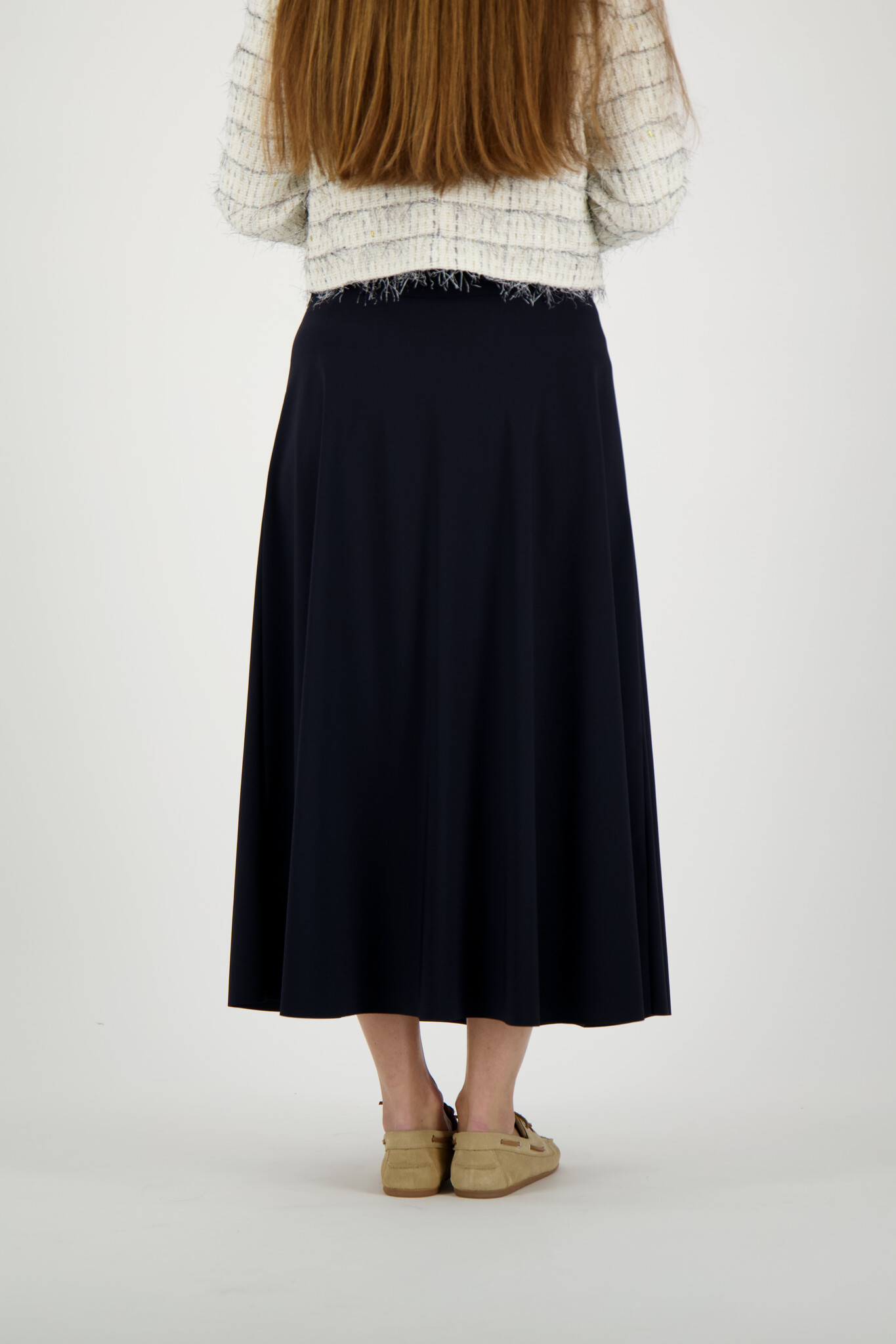 De Tineke rok van Lilytime in de kleur donkerblauw is een gerende rok van een gladde stof met een uitlopend model. Het overslagdetail en het bijpassende stofceintuur geven de rok een verfijnde afwerking.