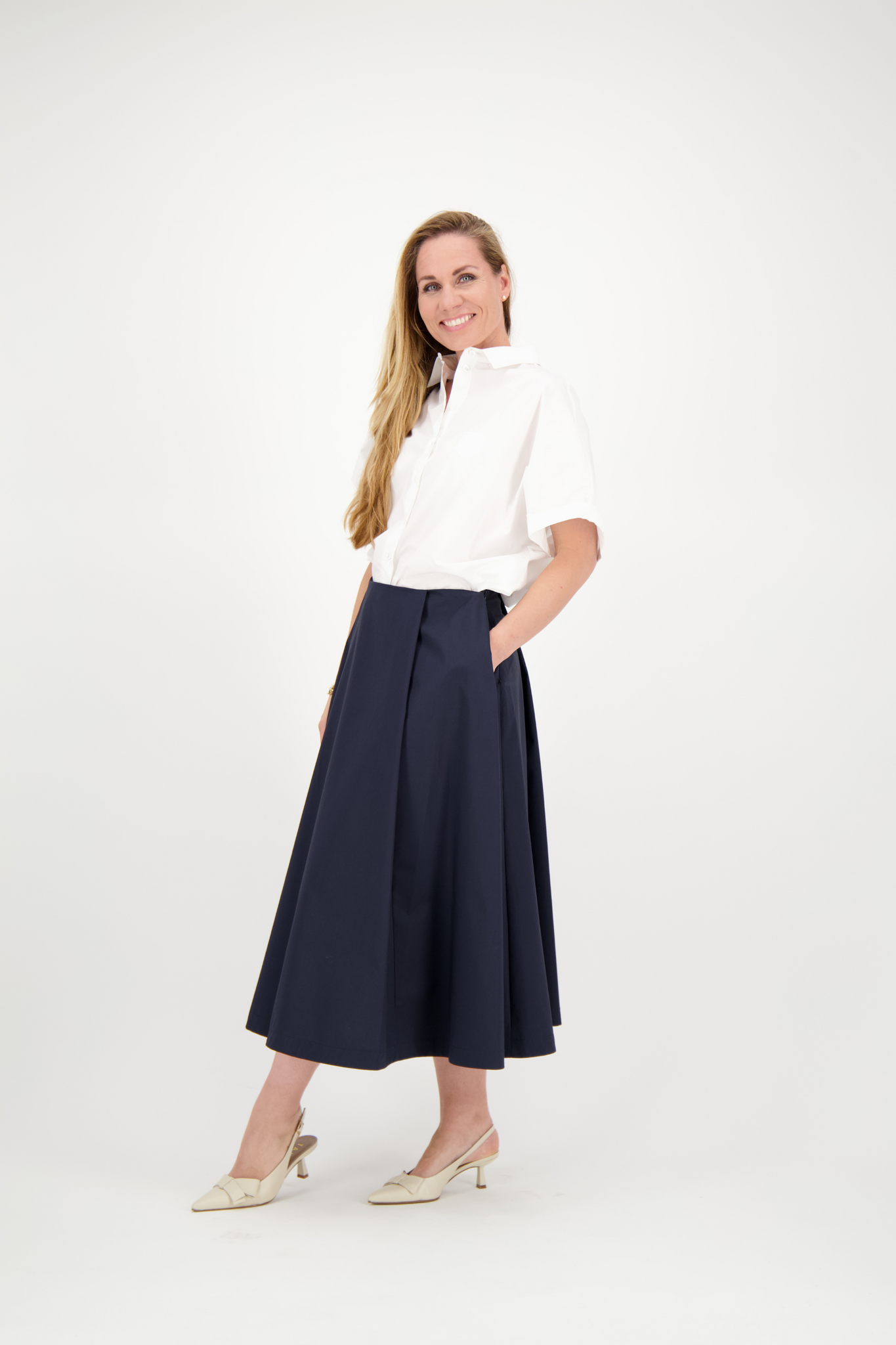De Meimeij Camicia in Off White is een tijdloos en luchtig overhemd met een moderne, loose fit pasvorm. Deze blouse van 100% katoen is uitgevoerd met een klassieke overhemdkraag, een doorlopende knoopsluiting en korte mouwen voor een casual-chic uitstraling. Een verfijnd detail is de mini steekzak op de borst, wat dit minimalistische ontwerp een speelse en eigentijdse touch geeft.