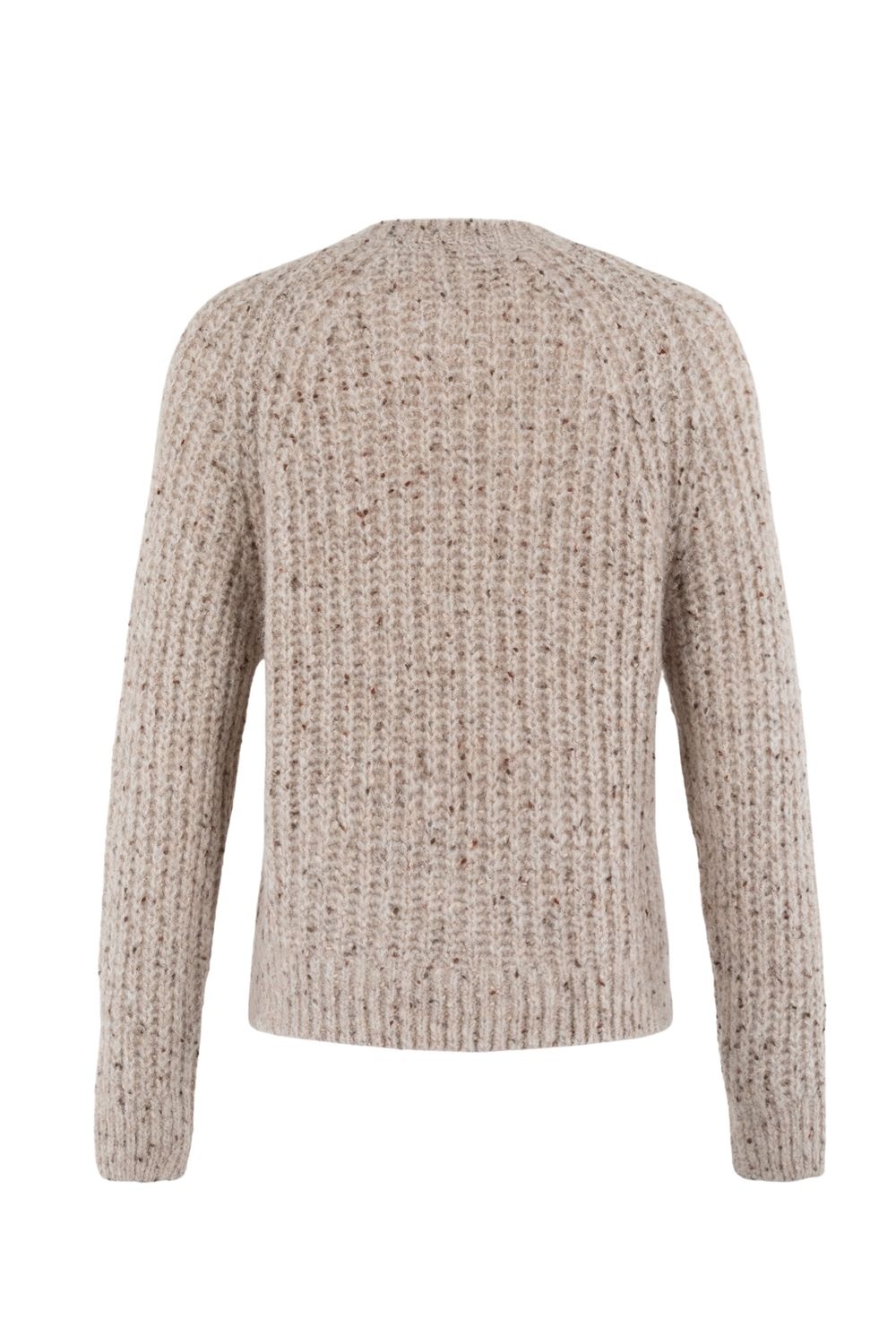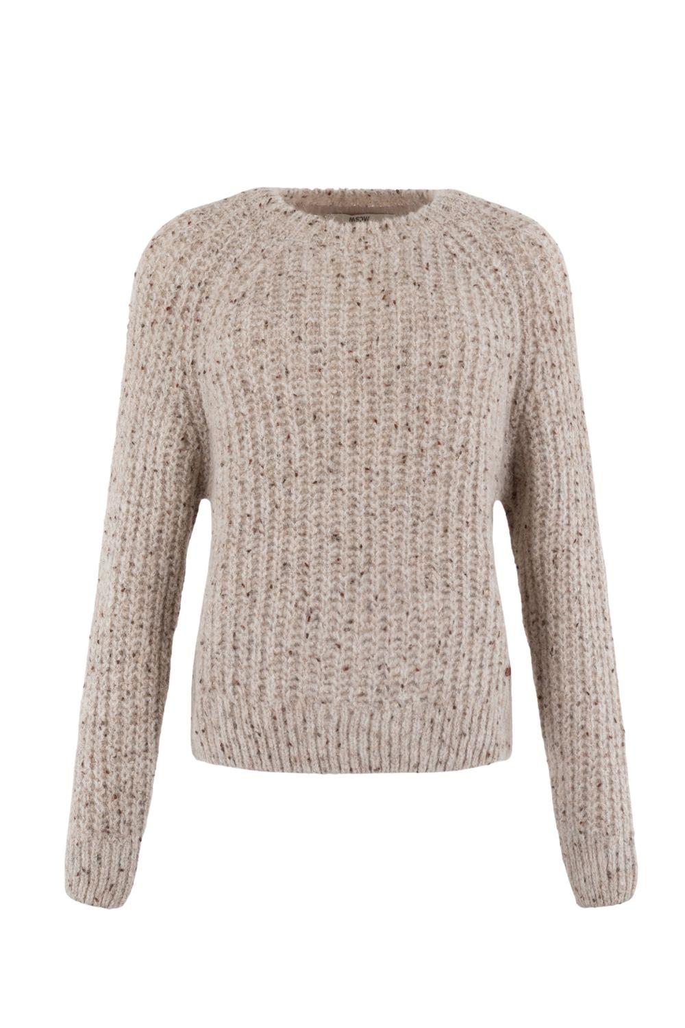 De Blanco Pullover van Moscow is een comfortabele, grof gebreide trui in een taupe kleur. De trui heeft een relaxte pasvorm, een ronde hals en lange mouwen. Het item is voorzien van bruine spikkels in de stof, wat zorgt voor een speels effect.