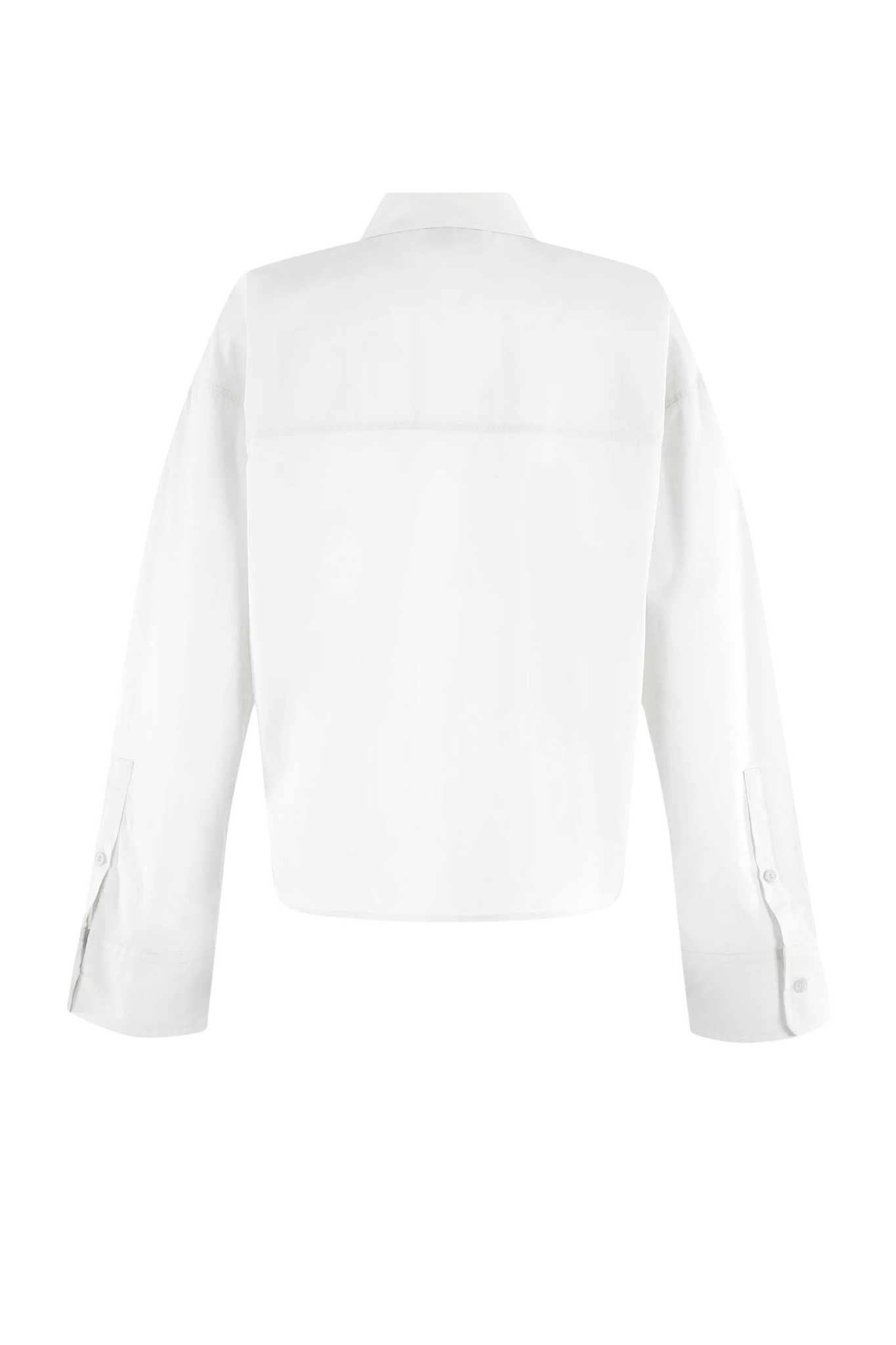 De Moscow Julia Blouse in White is een tijdloze klassieker met een moderne, frisse uitstraling. Deze blouse is vervaardigd uit een comfortabele katoenmix en voorzien van een traditionele overhemdkraag met een doorlopende knoopsluiting. Het ontwerp wordt gecompleteerd door lange mouwen en een subtiele borstzak met het herkenbare Moscow-logo, wat dit item een verfijnde en veelzijdige basis maakt voor elke outfit.
