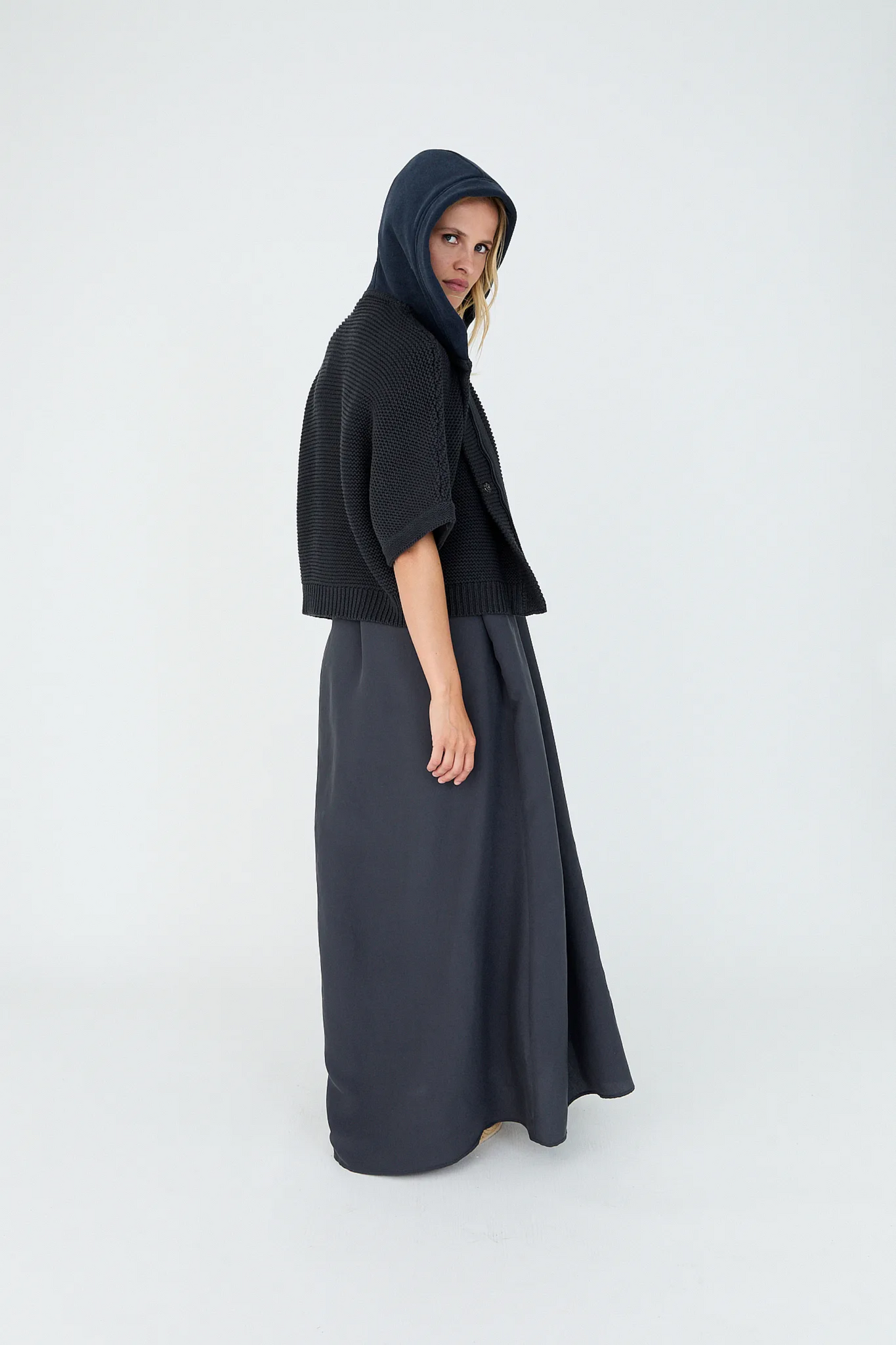 De Moscow Vest Timmy in Dark Denim is een stoer, grofgebreid vest met een unieke uitstraling en een comfortabele pasvorm. Dit donkerblauwe model is voorzien van korte mouwen, een blinde sluiting en een contrasterende capuchon van zachte sweatstof voor een sportief effect. Dankzij de grove textuur en het gelaagde ontwerp is dit vest een ideaal item om je outfit een nonchalante en eigentijdse touch te geven.