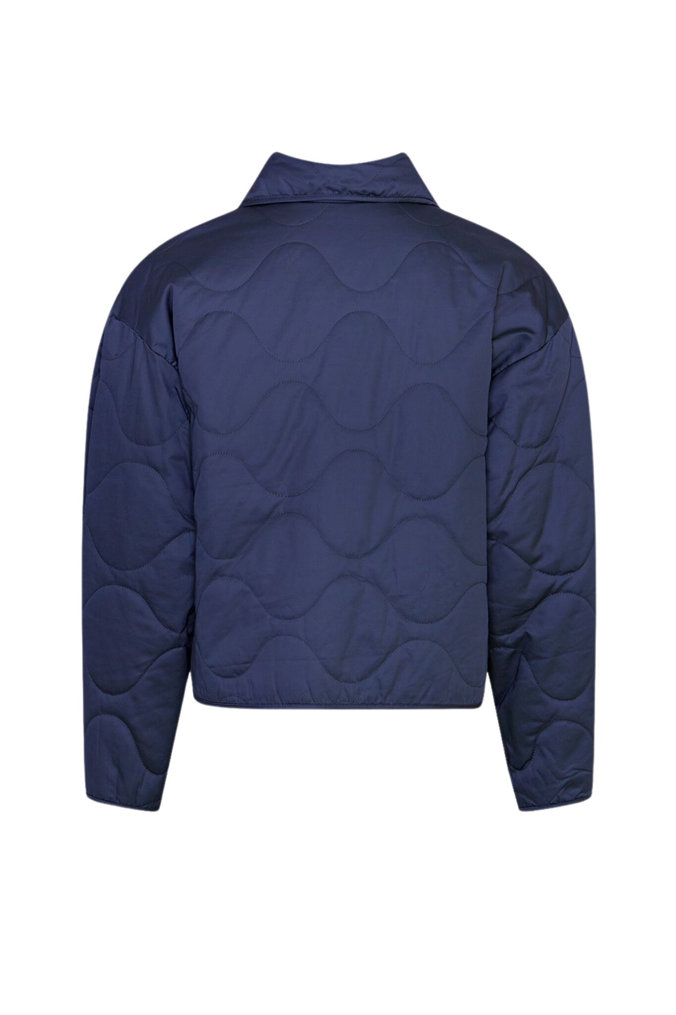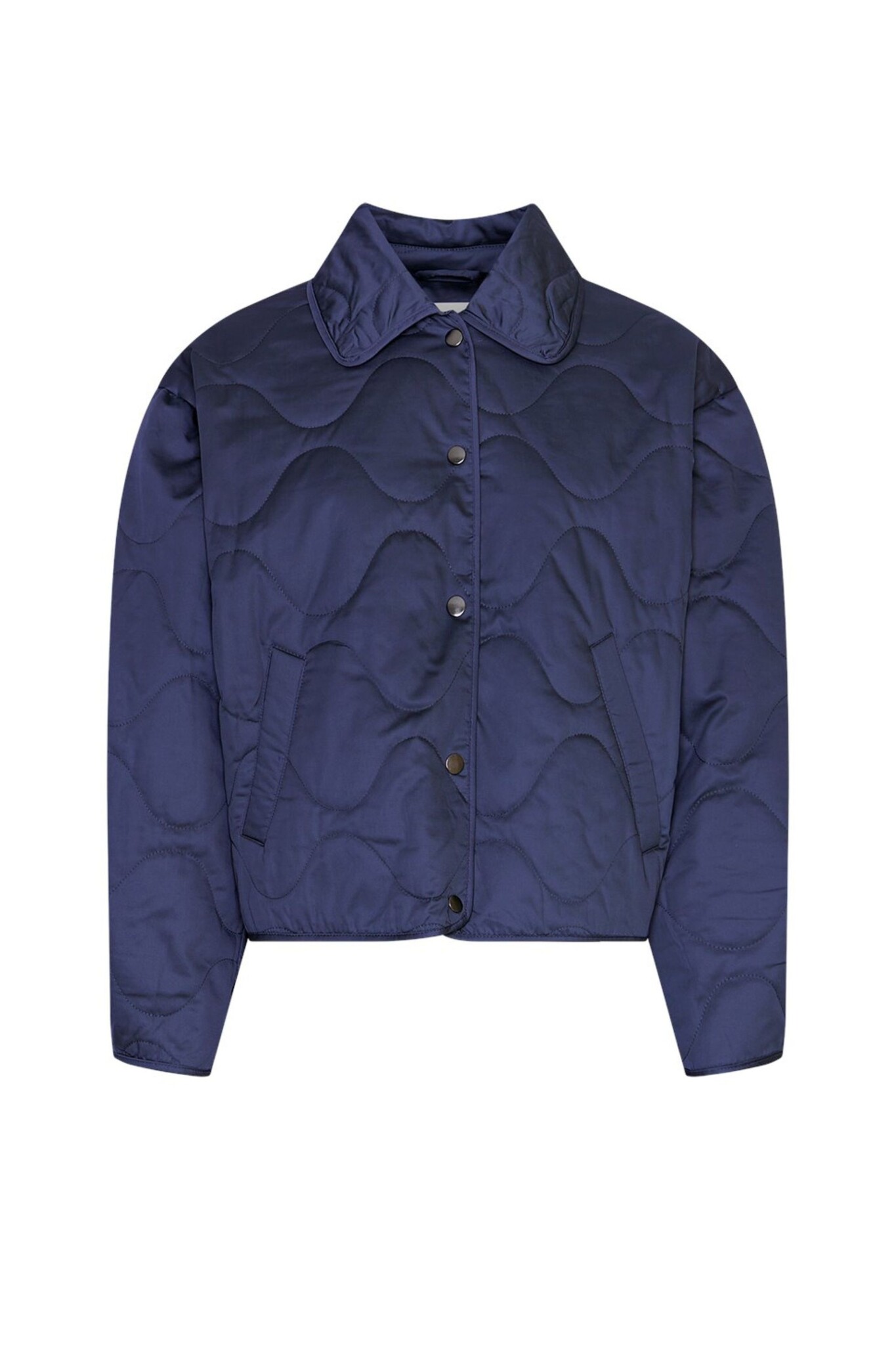Het Chista Jacket van Moss Copenhagen is een gewatteerd jack in de kleur Vintage Indigo. Het jack heeft een blousekraag, lange mouwen, drukknopen en korte zakken aan de voorkant. Dankzij de zachte vulling biedt het comfort en warmte, terwijl het klassieke ontwerp met blousekraag en drukknopen zorgt voor een stijlvolle uitstraling.