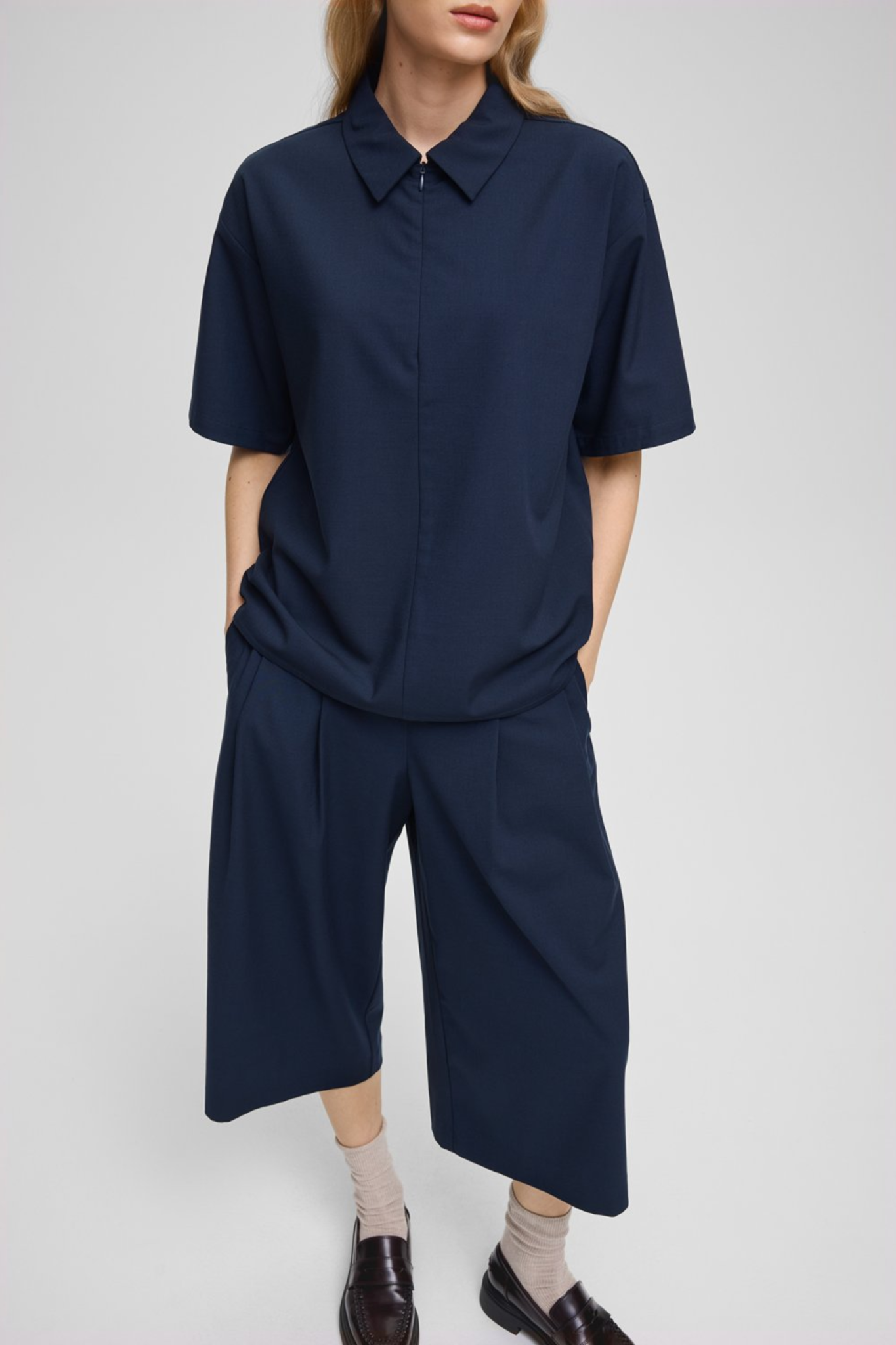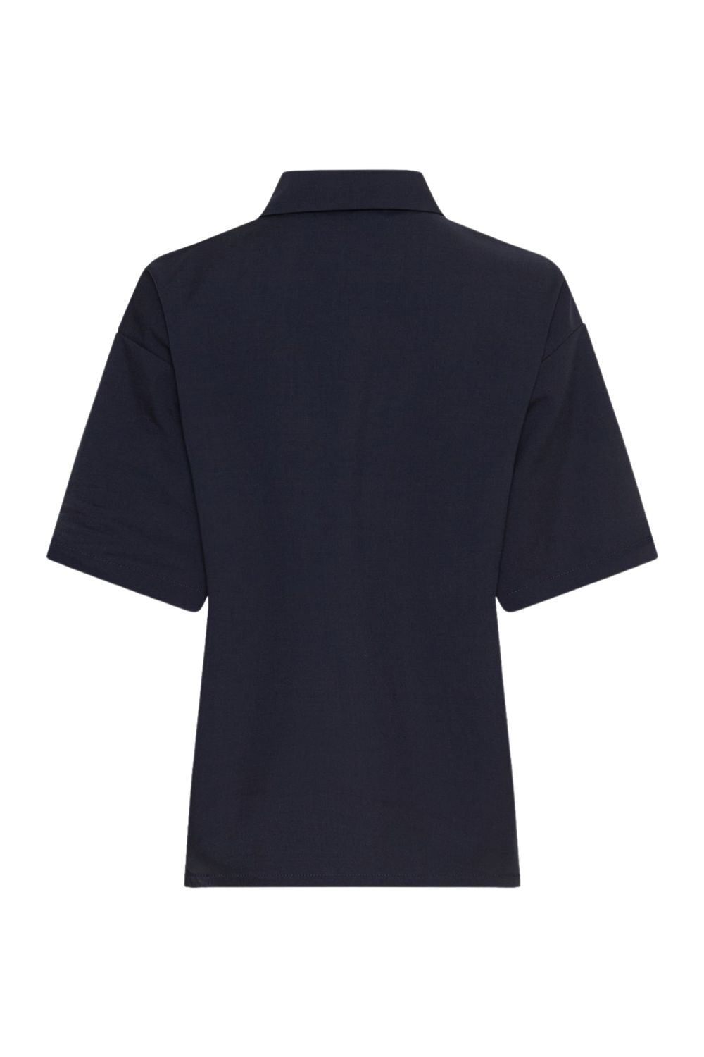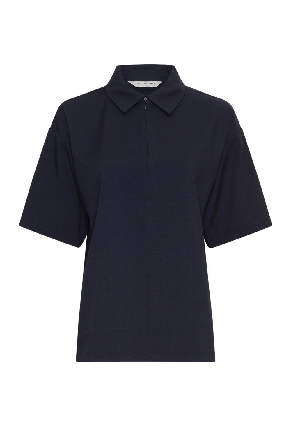 De blouse van het merk Moss Copenhagen is een sportieve top met een klassieke blousekraag. De top heeft 2/4 mouwen en een blinde ritssluiting aan de voorkant.