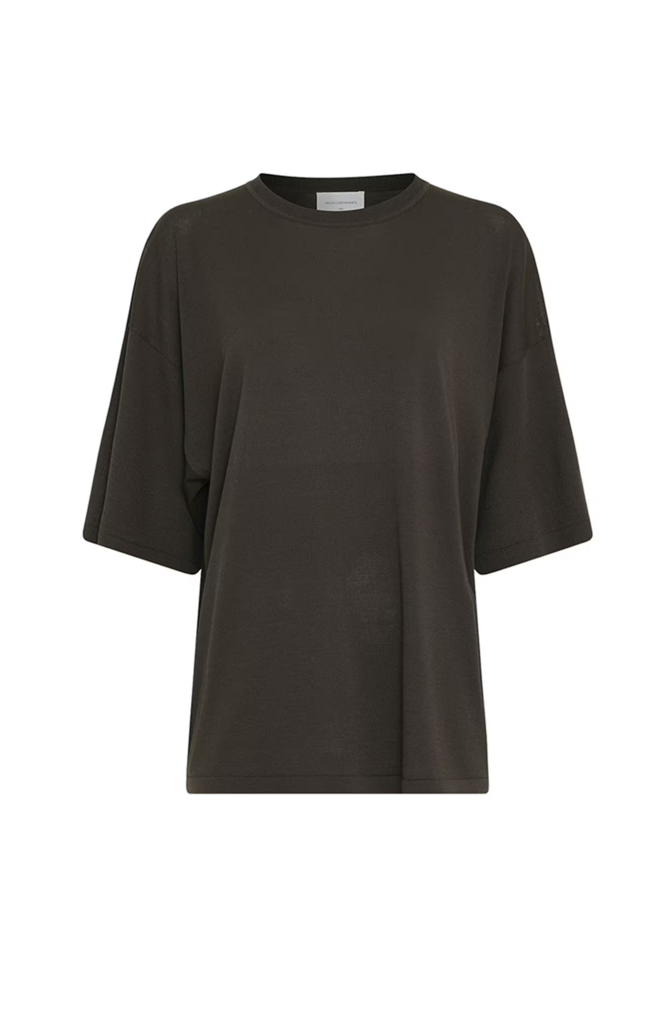 De Terine Tee van MSCH Copenhagen is een fijngebreide top met een oversized pasvorm en een comfortabele dijlengte. De top heeft een ronde hals met geribde boorden en korte, ruime mouwen met een verlaagde schoudernaad. Dankzij de zachte, fijngebreide kwaliteit is dit een veelzijdig item dat gemakkelijk te combineren is met zowel broeken als rokken.