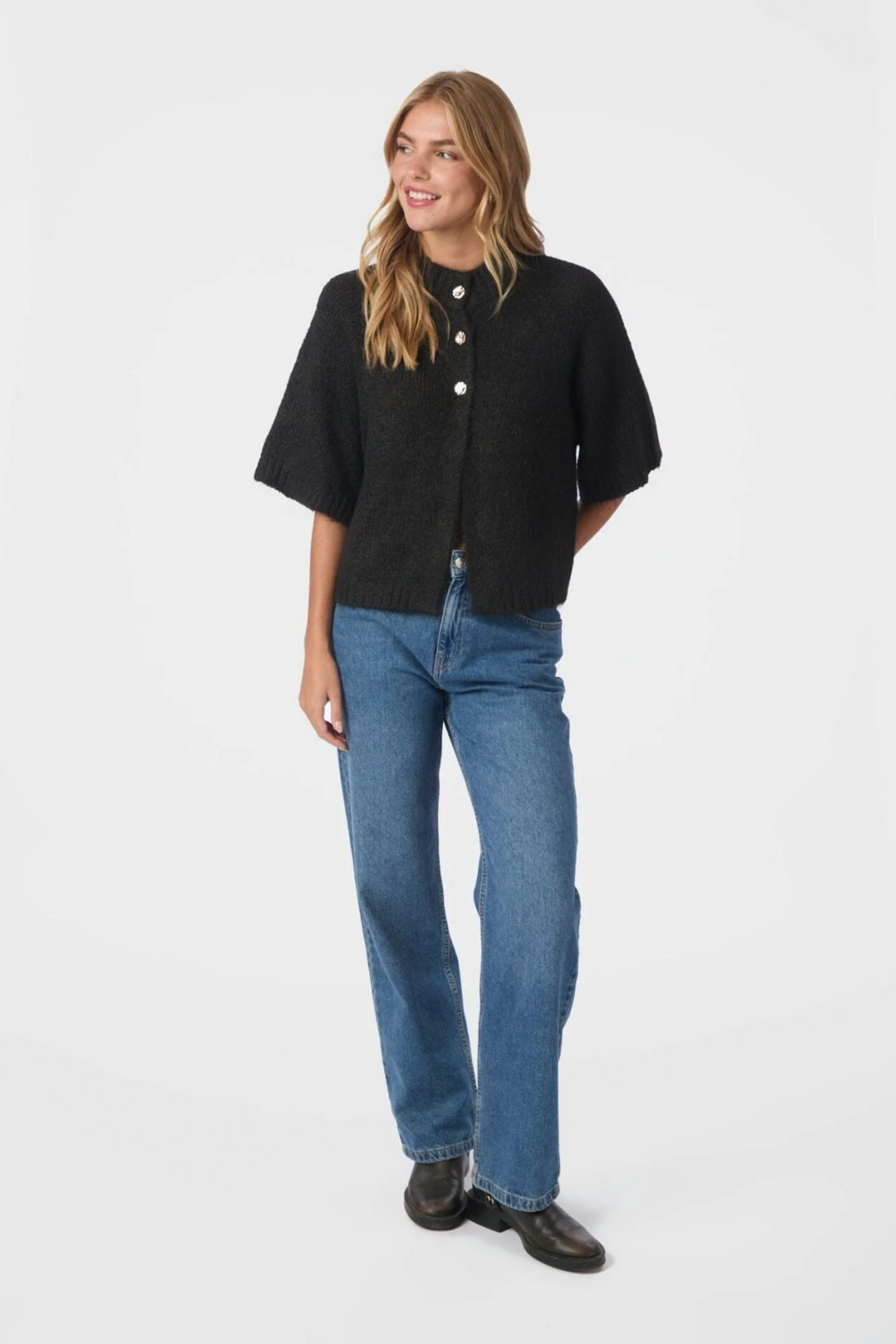 De Benuta Fluffy Knit Cardigan van het merk Neo Noir is een zachte, comfortabele cardigan in Dark Brown met ronde hals en korte mouwen. De cardigan heeft een knoopsluiting aan de voorkant en is gemaakt van fluffy gebreid materiaal met hoog draagcomfort.