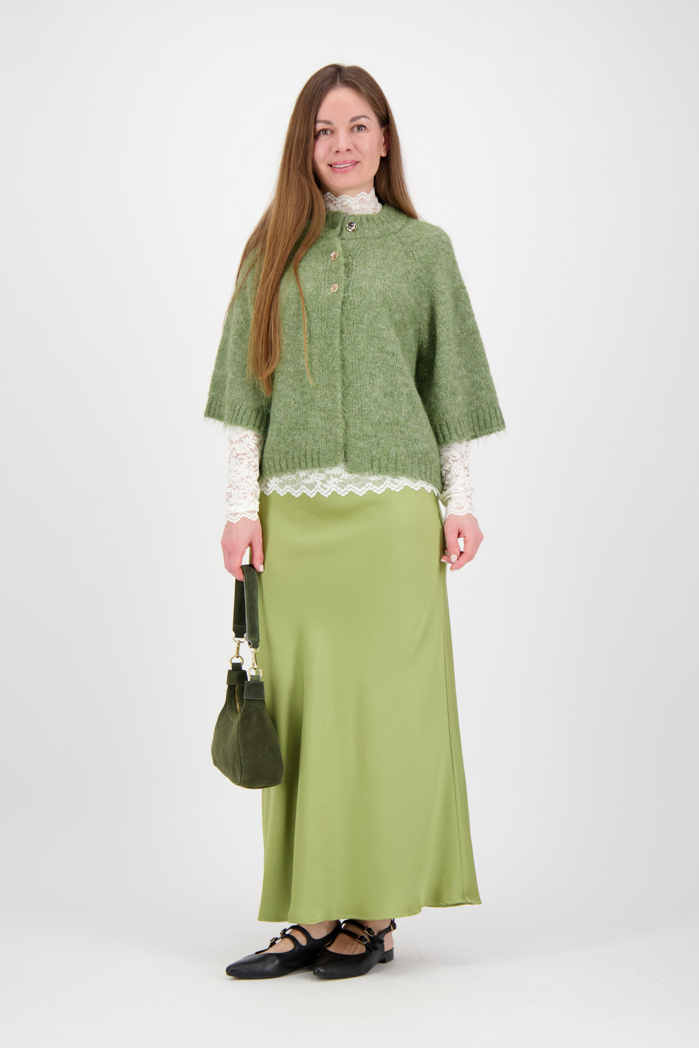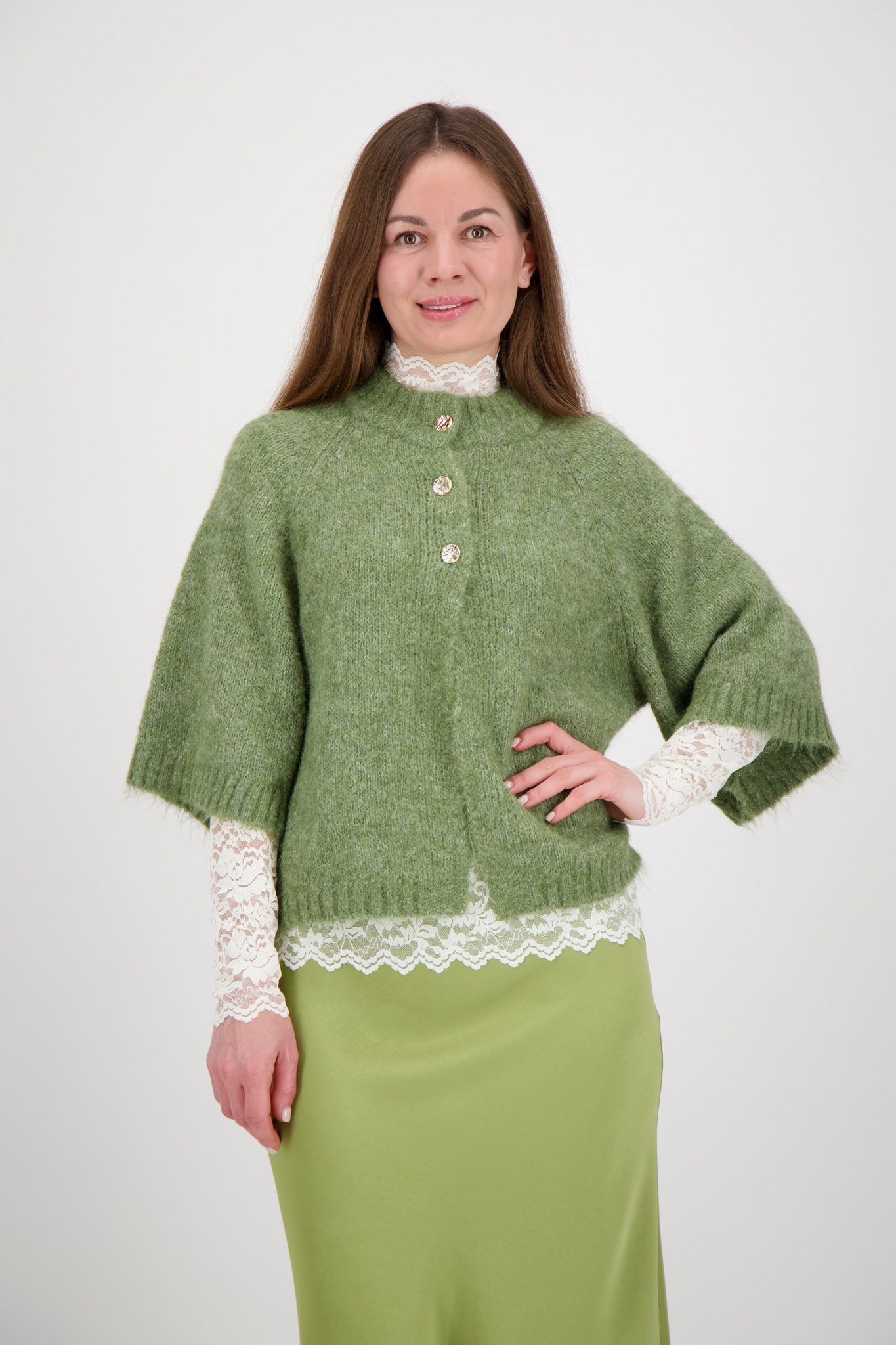 Neo Noir - Benuta Fluffy Knit Cardigan - Dusty Green