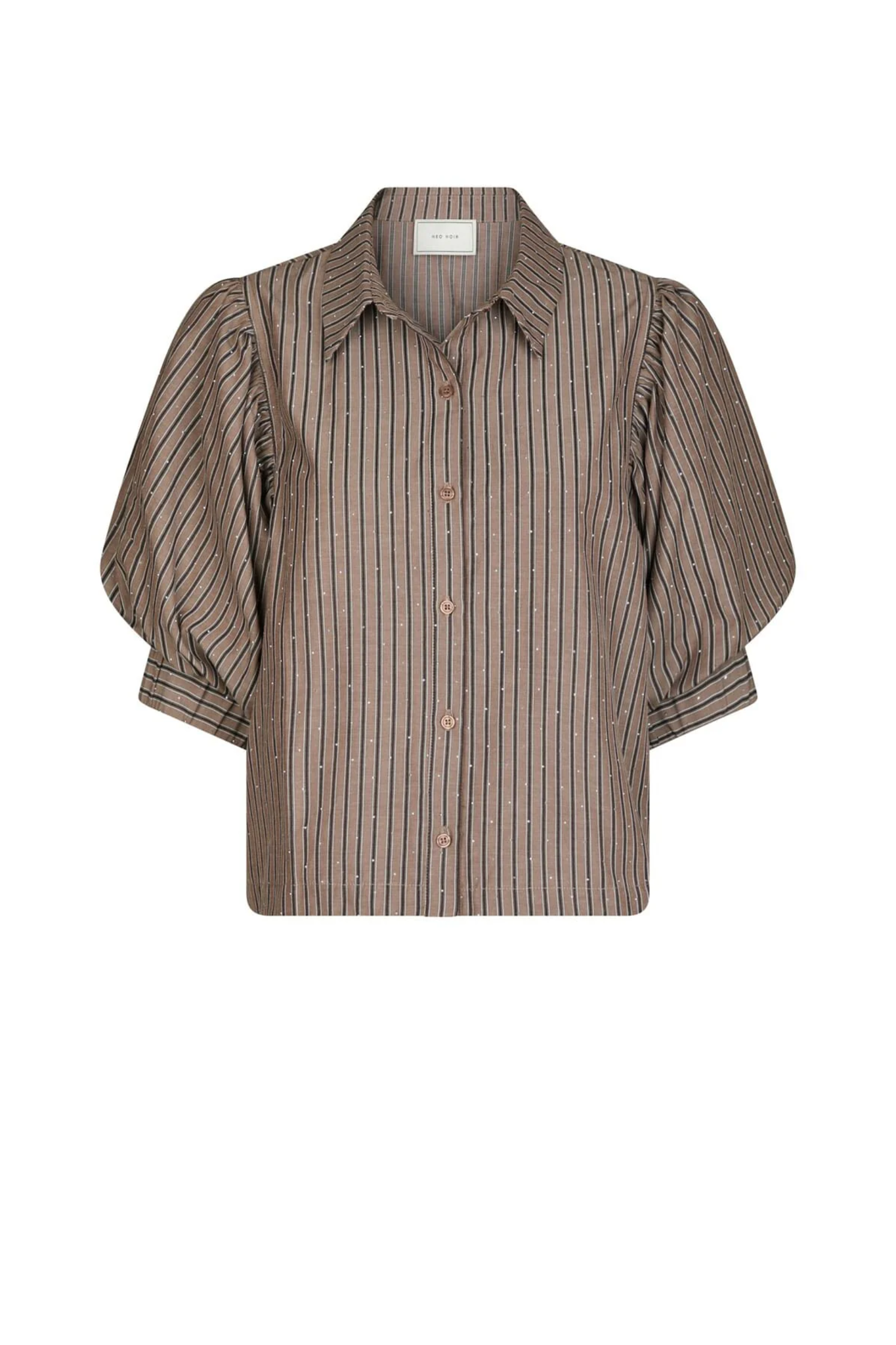 Neo Noir - Etta Soft Stripe Stone Shirt - Brown