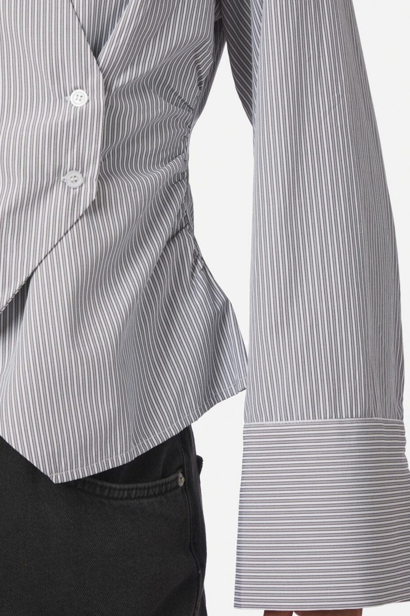 De Fenli Striped Shirt van het merk Neo Noir is een stijlvolle blouse met kraag en knoopsluiting. De blouse heeft een licht aangesloten taille en rechte, iets oversized mouwen voor een moderne pasvorm. Uitgevoerd in een subtiele streepprint in de kleur grijs.
